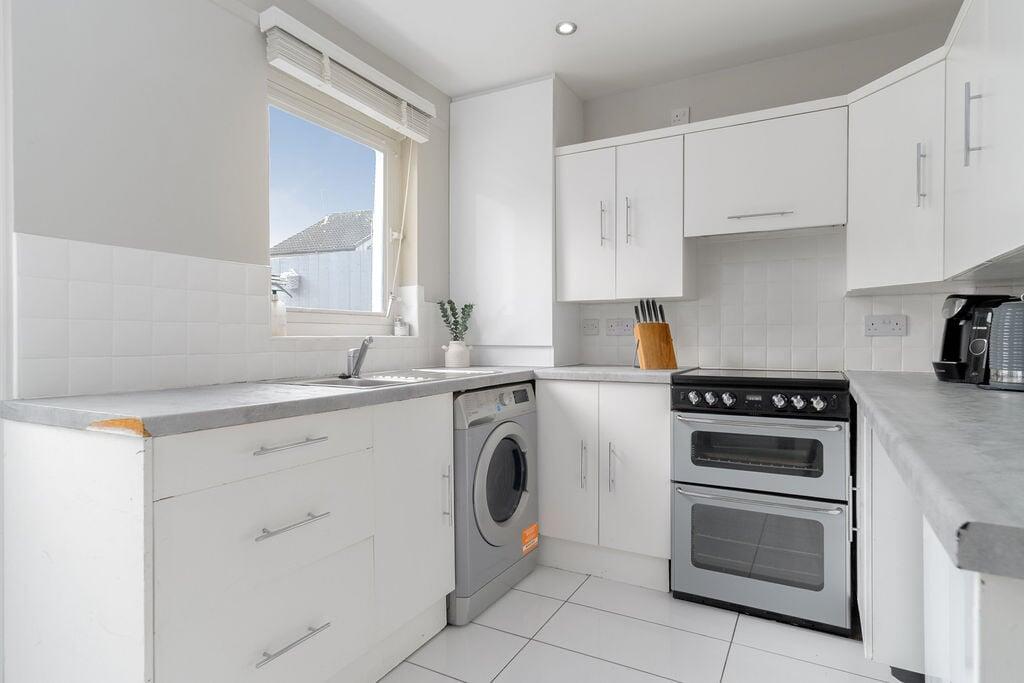 This is a two-bedroom terraced house in Falkirk, Scotland. The property appears to be in reasonable condition and features a modern kitchen and bathroom. It has a garden to the rear and is located within a reasonable distance of local amenities, including train stations and a school. The property is listed at £134,995, which seems like good value compared to the average property price in the area.