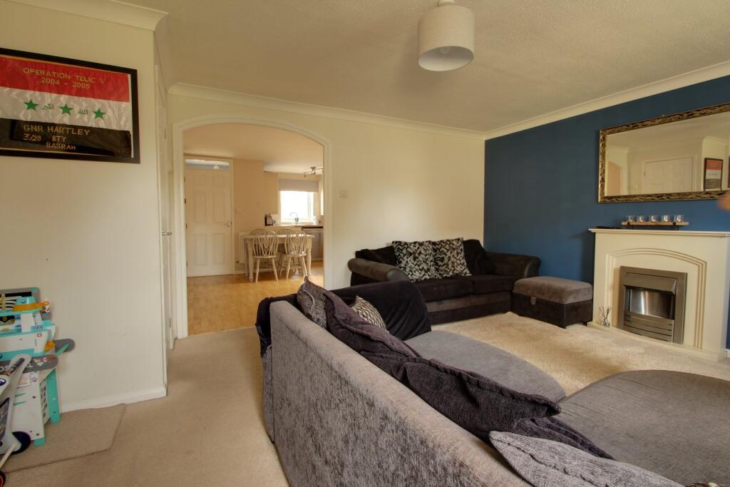 Situated in a small cul de sac of similar properties, this end terrace house offers three bedrooms, first floor bathroom and a downstairs cloakroom. The property is close to Collett Park and the town’s main facilities and the local convenience store.
