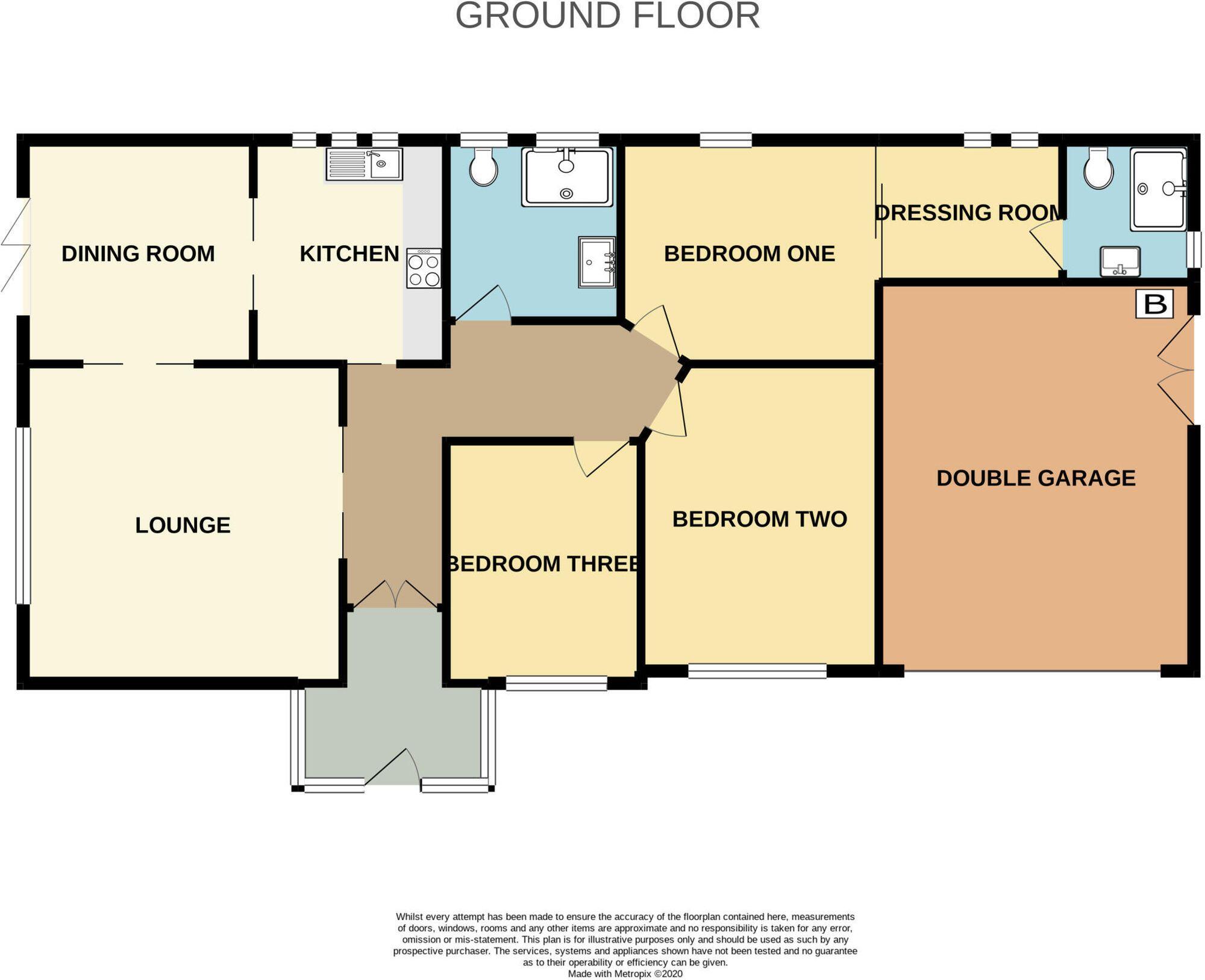 A delightful 3 bedroom detached bungalow offering good sized accommodation which comprises: Entrance porch & hallway, Fitted kitchen and dining area with access to front garden, separate living room, master bedroom with walk in wardrobe area and ensuite, two further bedrooms and family shower room.