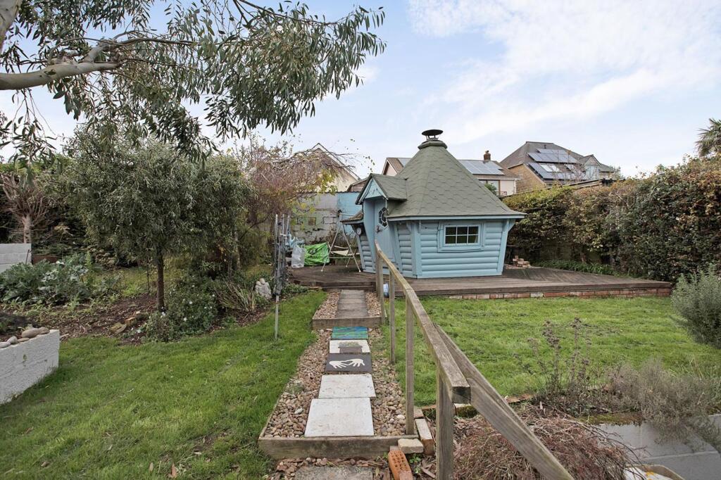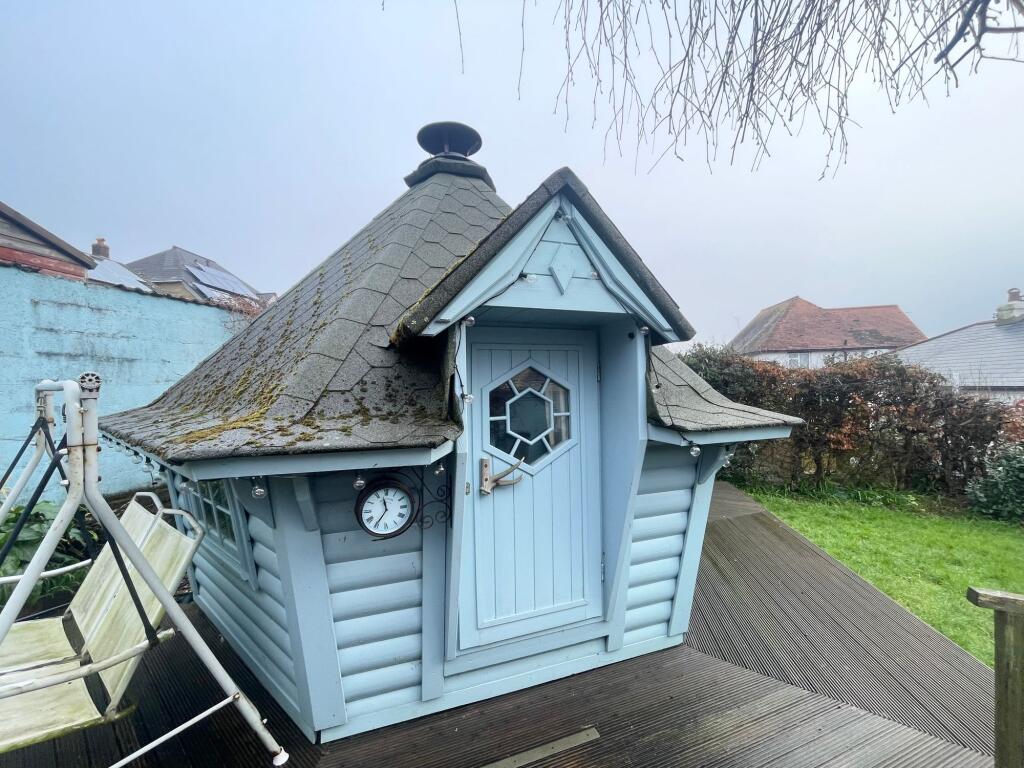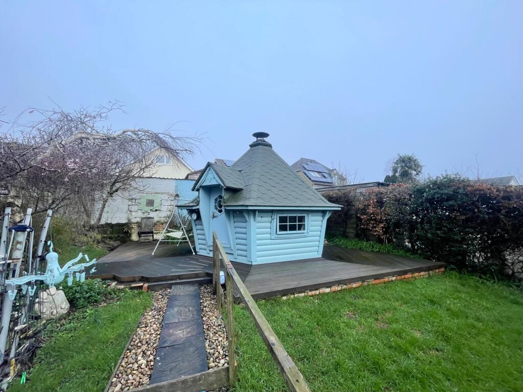 The property is a 4 bedroom, 2 bathroom detached chalet bungalow located on Higher Kingsdown Road in Teignmouth, Devon. It boasts 1,646.88 sqft of living space and a 1,720.07 sqft plot. The property enjoys an open aspect over Teignmouth with river, rural and sea views. There are appealing front and rear gardens and a detached barbecue house. Based on the provided images, the property appears to be well-maintained, though the decor is dated in places. The bathrooms and kitchen show some signs of age, but are functional. Overall, the structure seems sound, suggesting it is in reasonable condition. The property benefits from a substantial garden, offering ample outdoor space. The garden includes a decked area and a detached barbecue house, adding to its appeal. The list price of £450,000 seems relatively high compared to other properties in the immediate vicinity, particularly considering the age and style of the property. However, the sea views and the size of the plot are significant factors that could justify the higher price. More comparative data on recently sold properties in the area with similar characteristics would be needed for a more definitive price assessment. The lack of sqft data for nearby properties makes a precise price per sqft comparison impossible.
