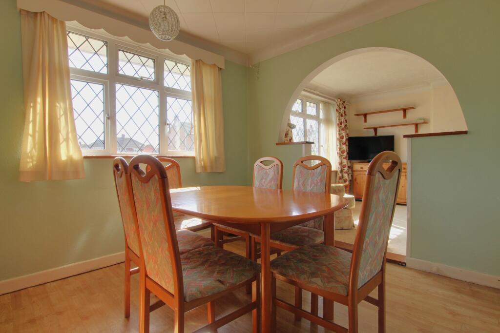 A two bedroom, semi-detached bungalow which is being offered with no forward chain. The property enjoys attractive, front and rear gardens with a driveway that provides parking for several cars and leads to the detached garage. A spacious entrance hall provides access to the dining which features...