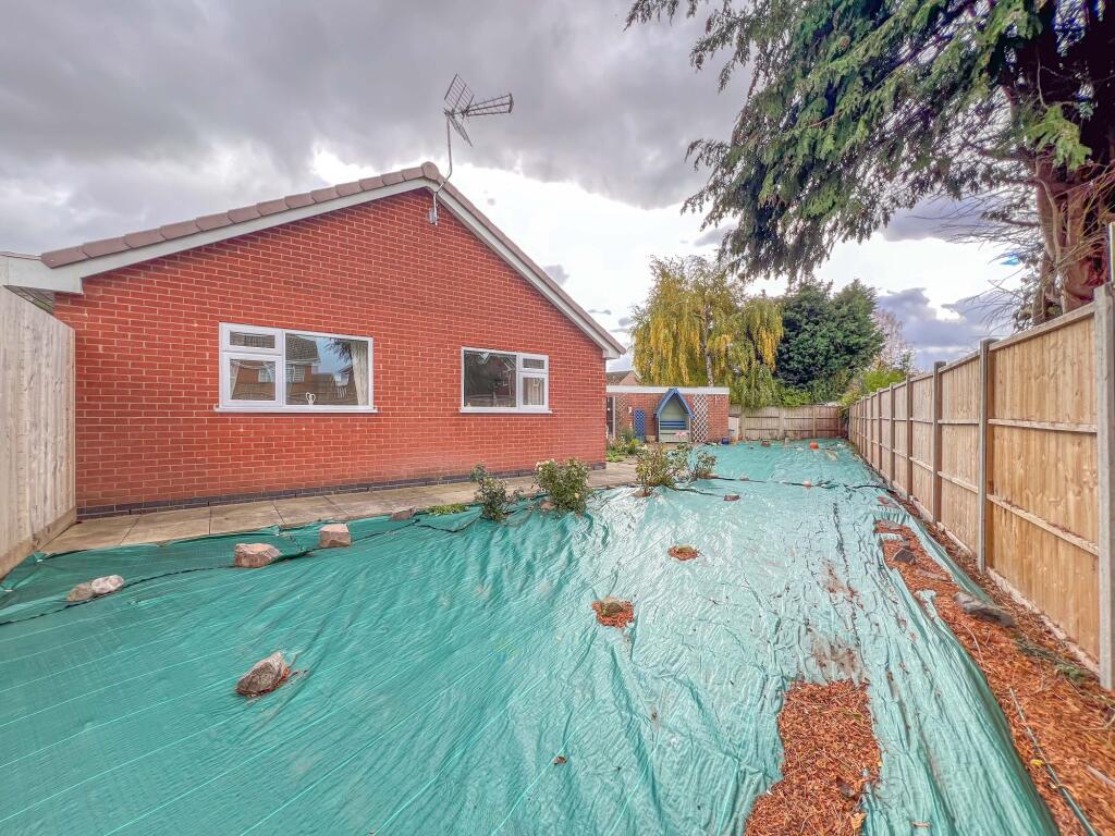 This is a detached bungalow in Weddington, Nuneaton. It features two bedrooms and one bathroom, with a square footage of 614.19 sqft. The property is listed for £320,000 by Carters of Nuneaton. Nearby amenities include several schools, such as St Nicolas Cofe Academy and Milby Primary School, and transportation options like the Nuneaton train station. The property appears to be in generally good condition, with a modern kitchen and bathroom, though the garden needs some work. The price is slightly above the average for the area but may be justified by the property’s condition and desirable location. The property is located on Caversham Close, which features similar detached properties.