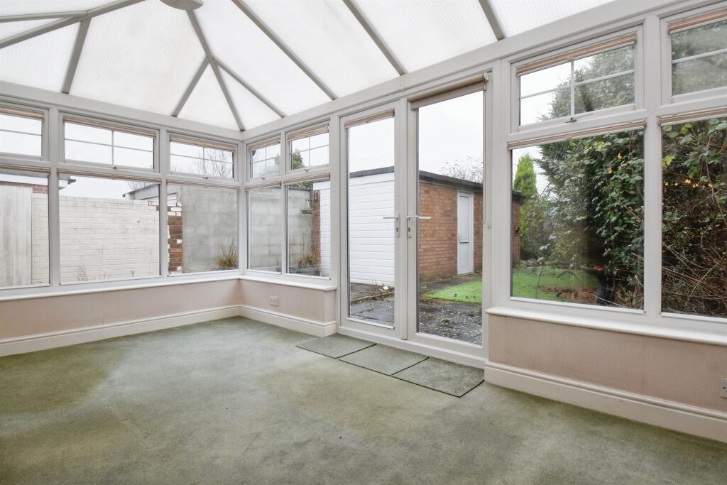Semi-detached bungalow in Oadby. Accommodation comprises porch, entrance hallway, extended living room, conservatory, kitchen diner, WC, two bedrooms, shower room, off road parking to the front and side, garage in the rear garden. This property is offered with no onward chain.