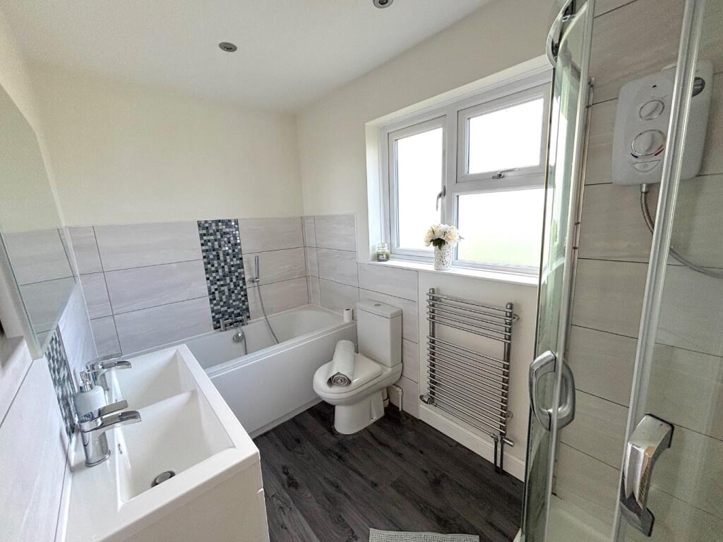 A well presented and extended detached family home that offers fantastic open plan living space, stylish modern fittings, four bedrooms including a ground floor bedroom with shower room, enclosed garden, garage and parking. NO CHAIN