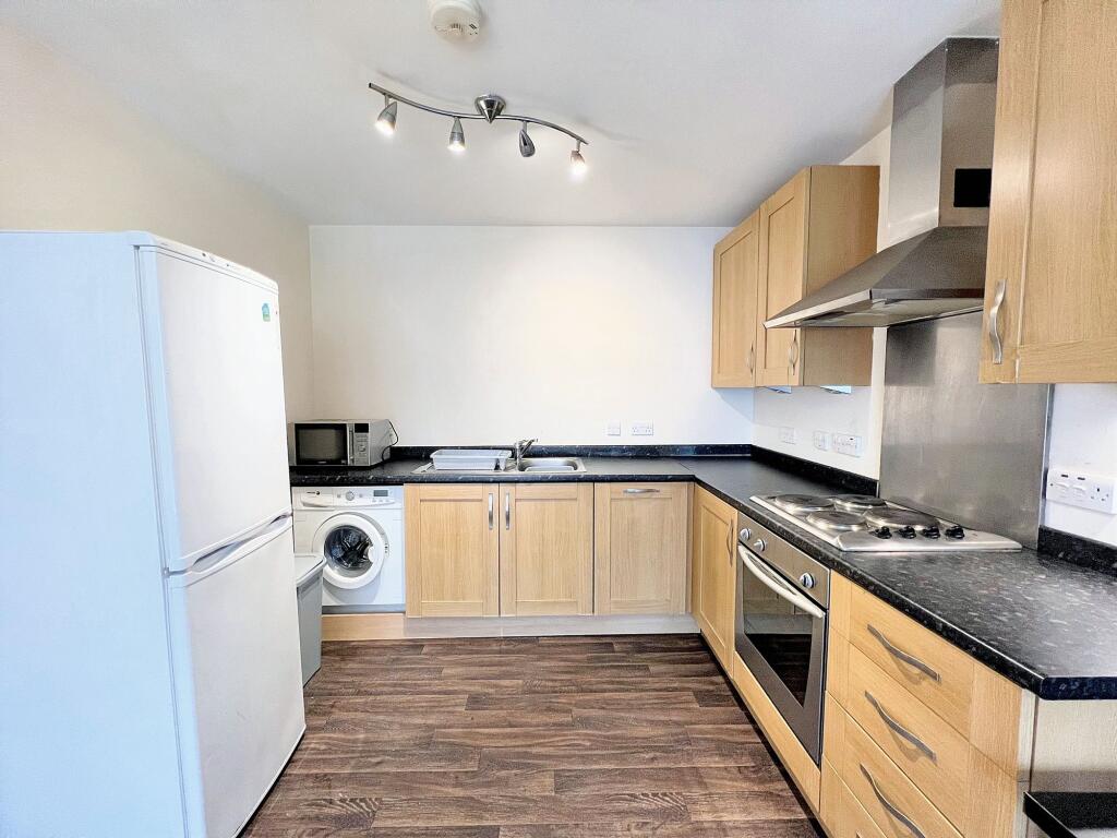 ***Available end August 2025*** Modern 1-bed ground-floor apartment in city centre. Secure entrance, double bedroom, family bathroom with shower, open-plan living room-kitchen with built-in appliances, private decked balcony.