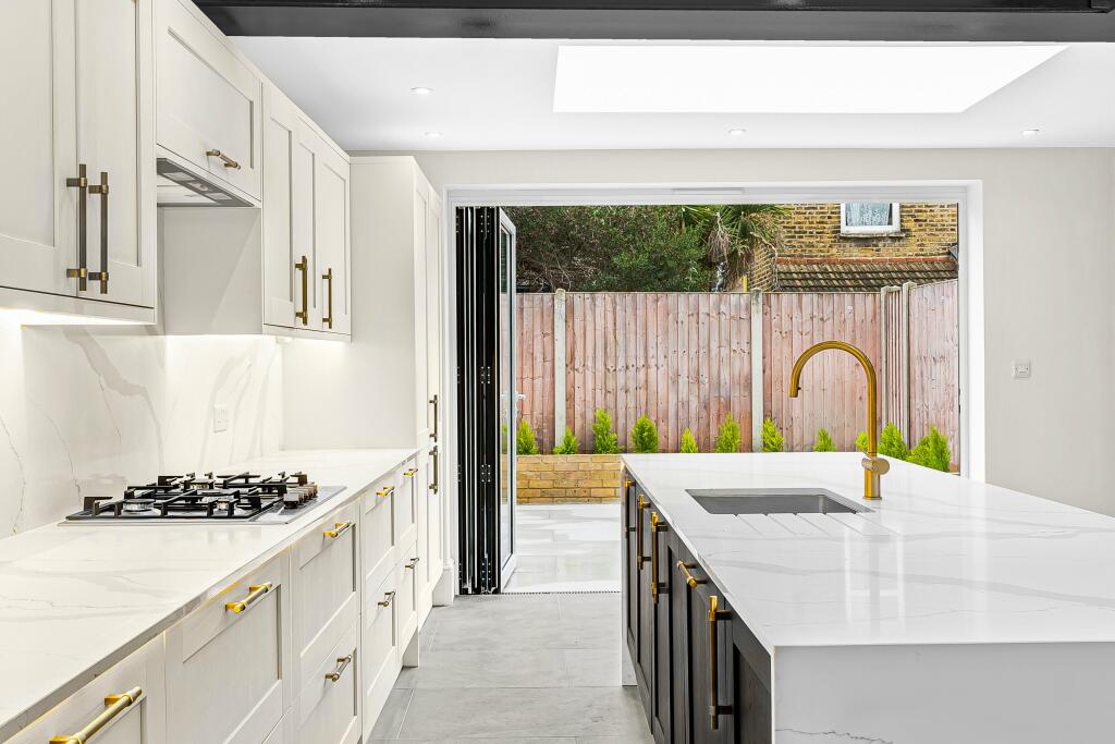 This four-bedroom Victorian terraced house on Fairland Road, Stratford, E15, presents a compelling opportunity for buyers seeking a well-located, fully refurbished family home. The property has clearly undergone a comprehensive renovation, resulting in a stylish and contemporary interior. The images showcase a high-quality kitchen with modern appliances, two updated bathrooms, and tasteful herringbone flooring. The property successfully blends original character with modern design elements. A key advantage is the proximity to several transport links, enabling easy access to other parts of London. The nearness to well-regarded primary schools adds to its family-friendly appeal. The small rear garden offers some outdoor space, however, its size limits its utility. While the asking price of £950,000 is relatively high considering the area, the extensive renovations and desirable features mitigate this. The lack of information about the average price per sqft makes a full value assessment challenging, but based on readily available data, the property seems reasonably priced within its immediate market context.