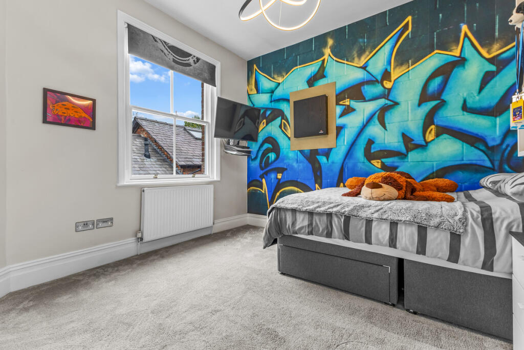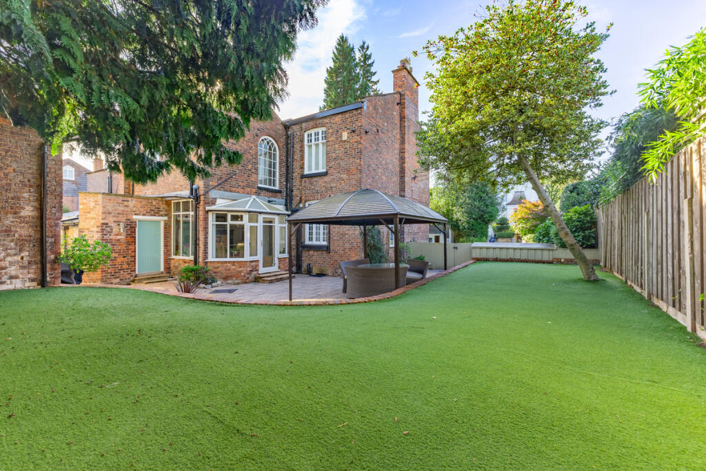 This is a substantial semi-detached property located in the desirable area of Bowdon. The house offers six bedrooms and four bathrooms, making it suitable for a large family. The interiors are modern and well-presented, with updated bathrooms and a contemporary kitchen. The property benefits from a good-sized garden and off-street parking. Its location is a major selling point, with excellent schools and transportation links nearby. Overall, this property offers a combination of space, style, and convenience in a sought-after location.