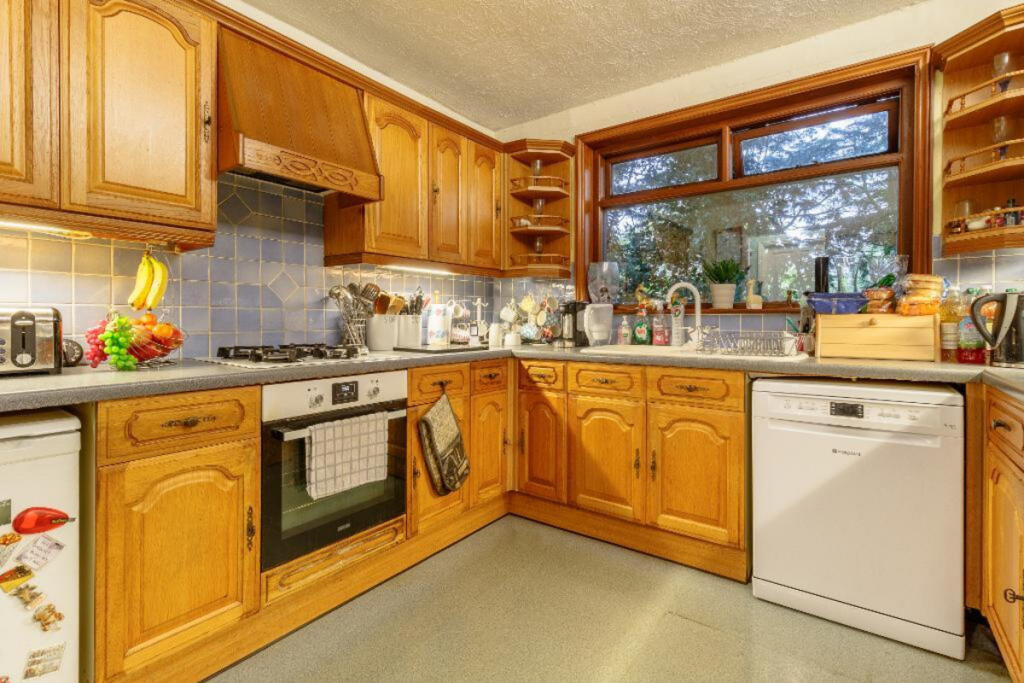 Rosedene, located on Canterbury Road in Ashford, is a four-bedroom bungalow presented by Mockford & Hunt. While the interior could benefit from modernization, the property features a large garden with mature trees, a pond, greenhouse and sheds. The property is located within reach of local amenities and transportation. The presence of nearby schools, including Challock Primary School with an ‘Outstanding’ Ofsted rating, adds to the location’s appeal for families. The property is positioned at the higher end compared to the average property price in the area.