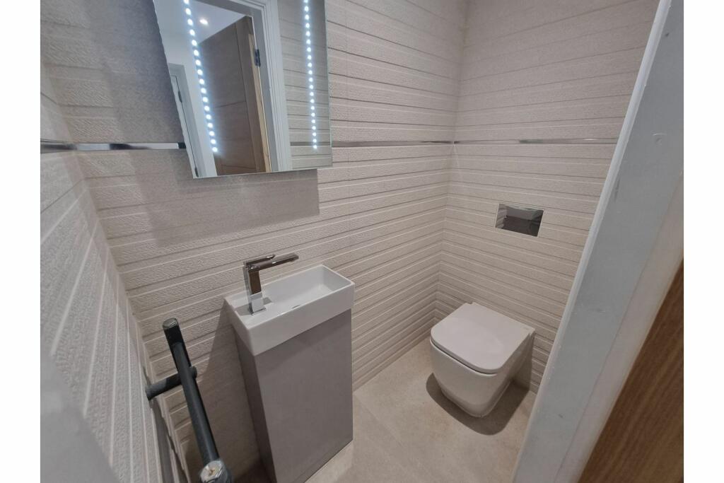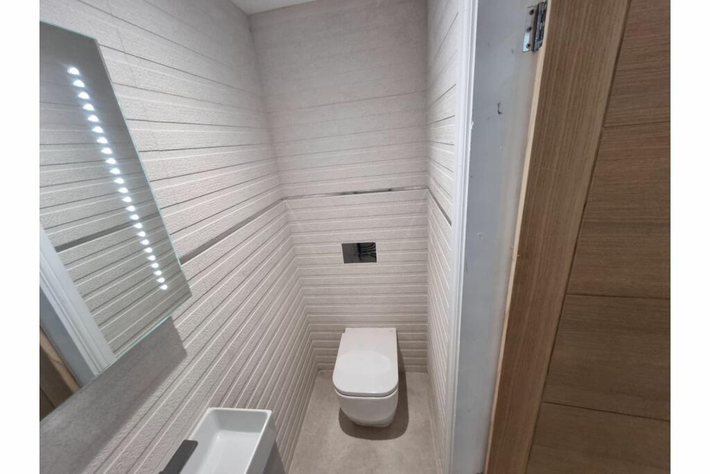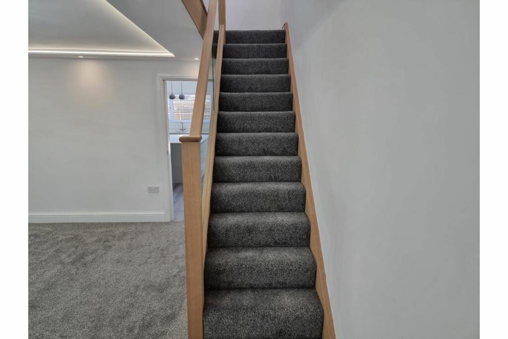 This three-bedroom semi-detached property in Sutton, St Helens, presents as a significantly renovated or newly built home. The images reveal a modern interior featuring high-quality fixtures and fittings, including a contemporary kitchen with integrated appliances from brands like Neff and AEG, and a stylish bathroom with modern tiling. The interior is characterized by a bright and open feel, likely enhanced by skylights in the extension. The house benefits from a relatively small, but well-maintained, rear garden with artificial turf and a decked area. The property is within easy reach of well-regarded primary schools and several train stations, enhancing its convenience and appeal to families and commuters. However, while the overall condition is excellent, the lack of information regarding the property’s size means a complete valuation is not possible. A full survey would be recommended to confirm the overall condition and ensure that there are no underlying issues not visible in the images provided. Furthermore, the disparity in prices of nearby properties raises questions about consistency in the valuation of similar properties in the area. The lack of information regarding plot size and square footage makes a definitive judgement on its value extremely difficult.