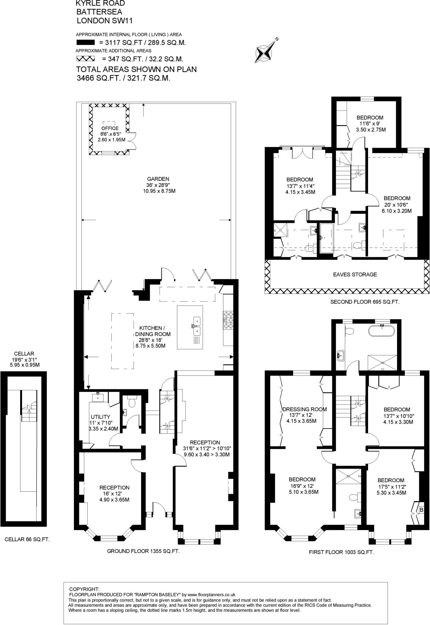 This property is a 6 bedroom, 4 bathroom terraced house located on Kyrle Road in the Balham area of Wandsworth, London. It boasts 2,297.33 sqft of living space and a 3,466 sqft plot.