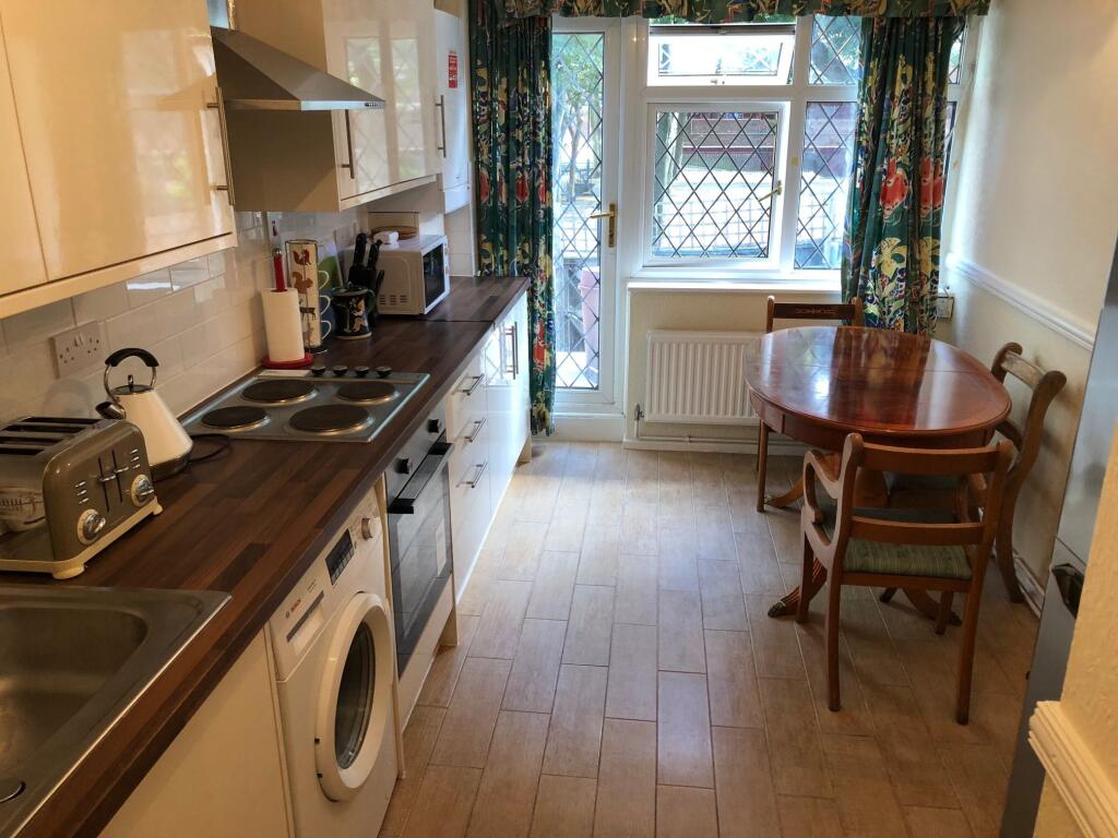 Furnished 3-bed with private garden, spacious kitchen/diner, separate lounge, and bathroom across two floors. Includes desks and storage. 1 min from Caledonian Rd with great transport links. Rent whole or per room-contact us for pricing.