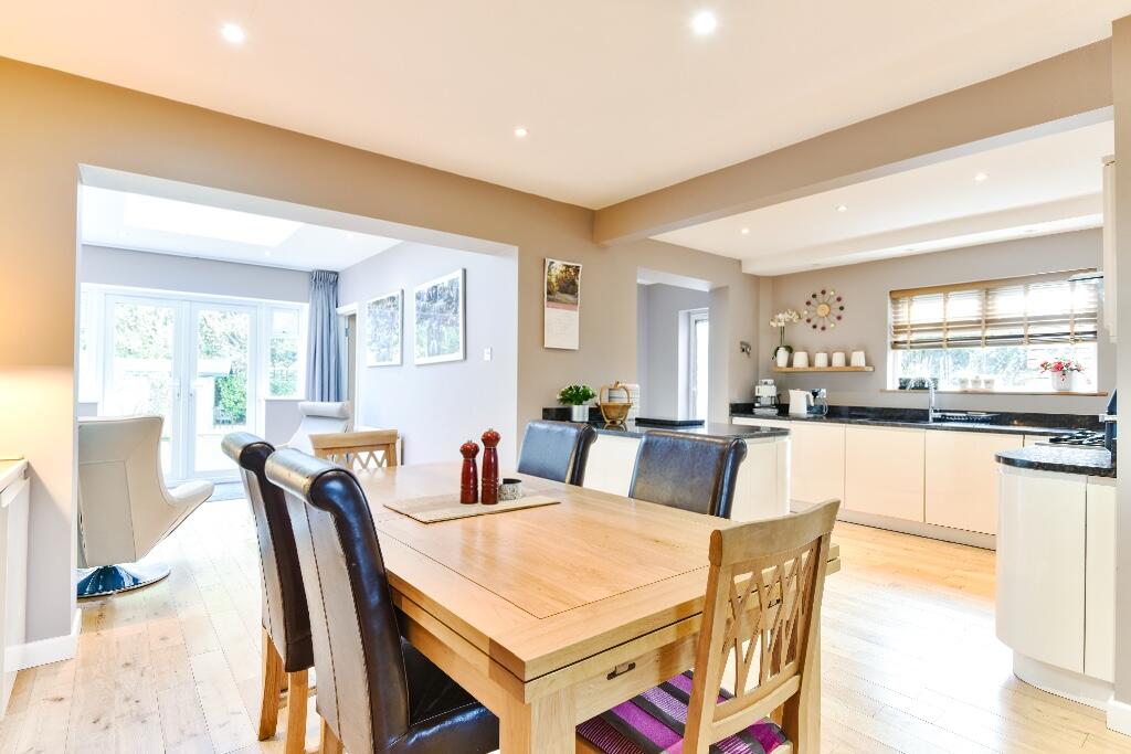 A superbly presented and sympathetically extended 4 double bedroom detached house with 40' double length attached garage/workshop, fabulous kitchen/family room and delightful rear garden backing onto the Three Cornered Copse being just a short walk from Hove Park and a local parade of shops