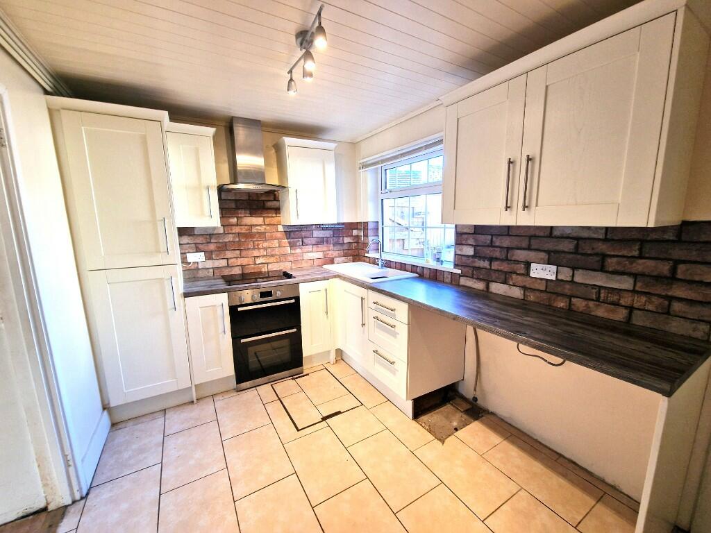 This two-bedroom end-of-terrace house located on Wood Street, Cwmcarn, is presented for sale at £139,995. The property’s key features include a recently modernised kitchen and bathroom. The kitchen boasts modern cabinetry and tiling, creating a contemporary feel. The bathroom is similarly updated, offering a modern and clean space. However, some areas of the house are in need of renovation. At least one bedroom displays noticeable damage and requires redecoration and repair work. The property benefits from a small, paved garden that could be improved with some effort. The location benefits from being close to Cwmcarn Primary school, and has reasonably convenient links to transport via the nearby train stations. Overall, the property represents a mixed bag, presenting a potentially lucrative opportunity for a buyer willing to invest time and resources in updating aspects of the property. Additional information regarding the average price per square foot for the area, and a full structural survey would help form a more conclusive evaluation. Given the lack of information regarding the specifics of nearby amenities, this affects the overall perceived value positively and negatively. The property’s selling points are the updated kitchen and bathroom and its location relative to schooling and transportation, however the need for renovation in parts of the property and the small garden are limitations.
