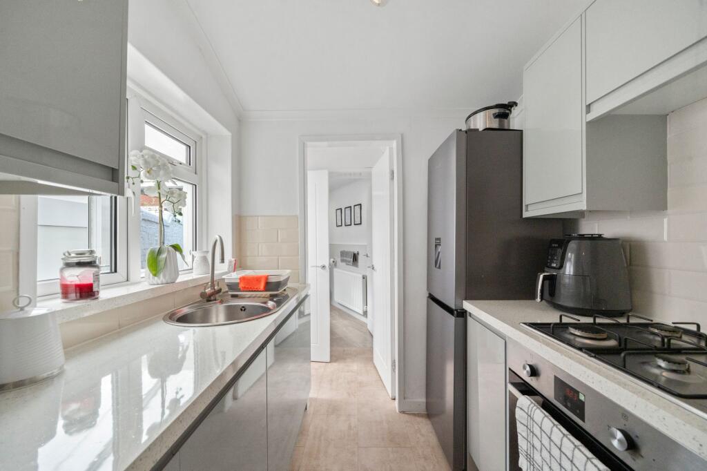 Charming 2-bed terraced house in coveted location near Taylor Park, schools, and college. Lounge, dining room, fitted kitchen, bathrooms, utility room, and well-maintained gardens.