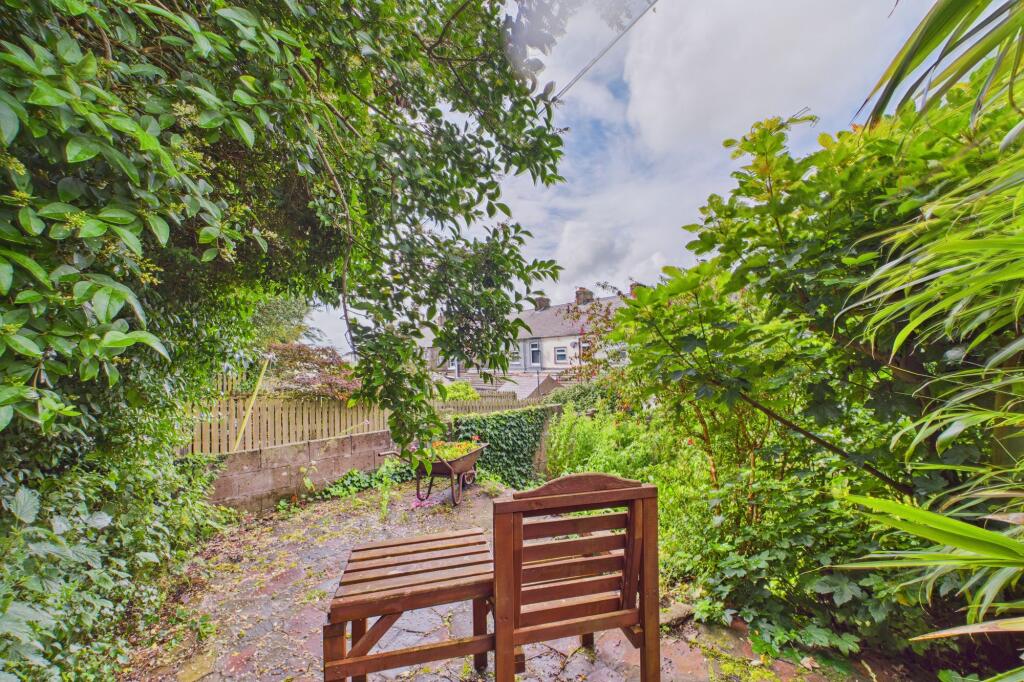 Situated in an elevated position overlooking a communal grassed area to the front, this lovely traditional terraced property is deceptively spacious and enjoys a good size mature rear garden.