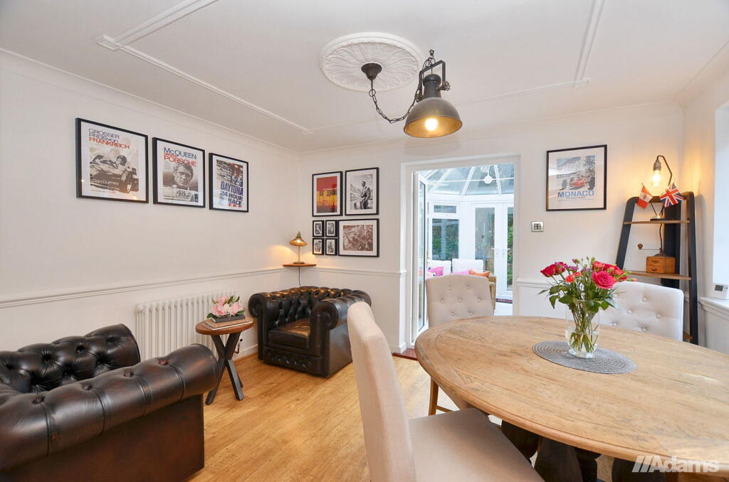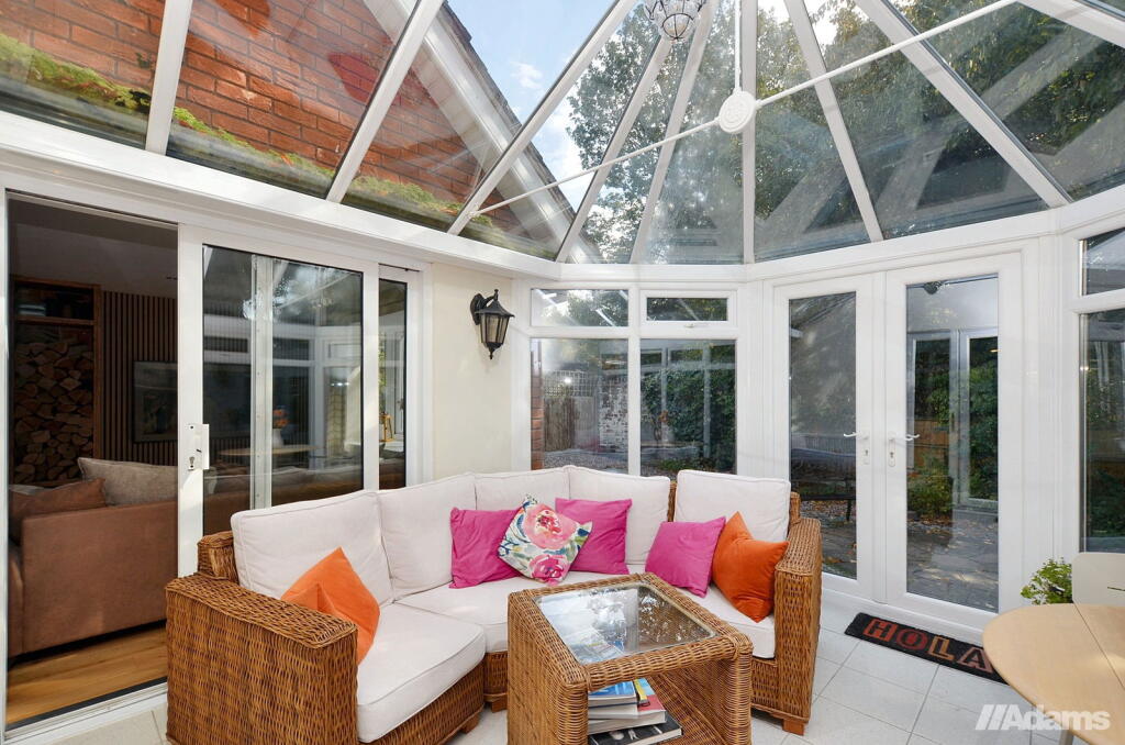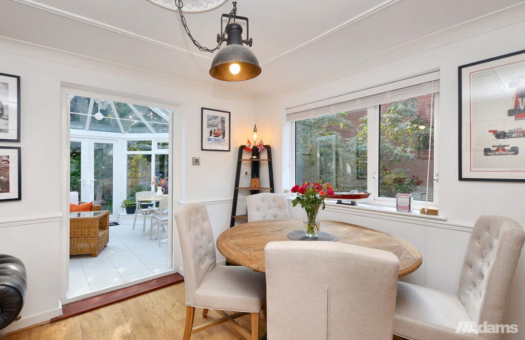This is a detached property in Halton Village, Cheshire, featuring six bedrooms and three bathrooms. The house includes a modern kitchen, a conservatory, and a garden with a shed. While the interior appears well-maintained, the asking price seems high for the area and square footage. The property benefits from its proximity to local schools and transportation links, making it suitable for families. The inclusion of a garage and utility room adds further convenience.