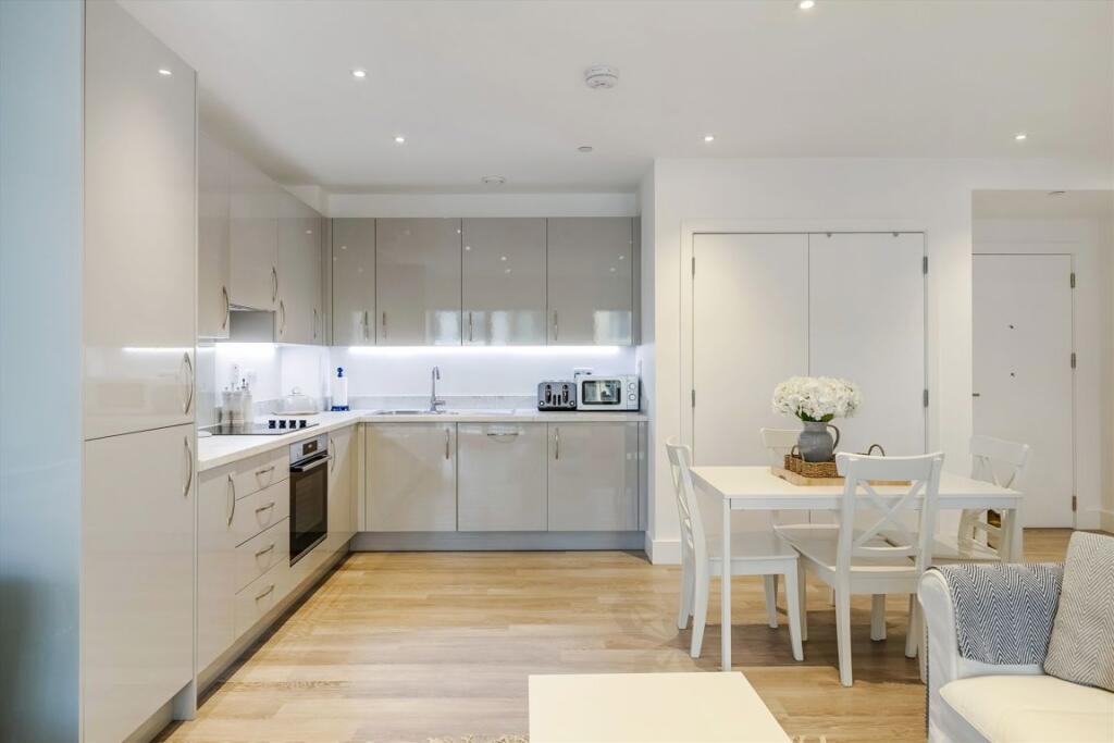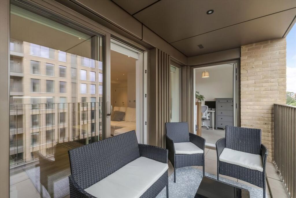 A stylish fourth-floor two-bedroom apartment with lovely private balcony in a sought-after modern development moments from Clapham Common.
