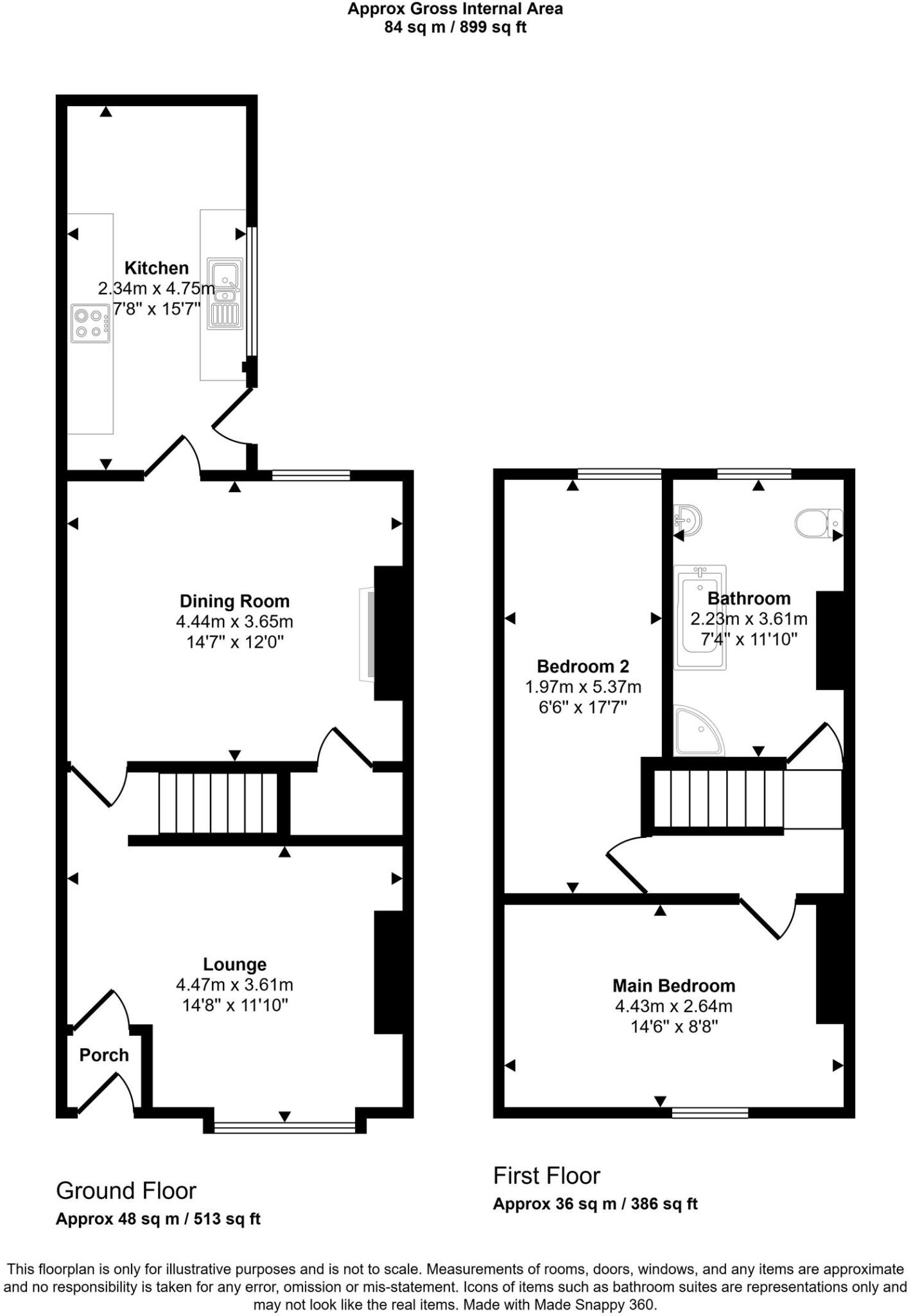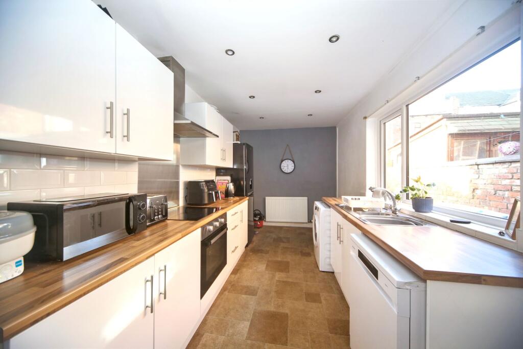 This is a two-bedroom terraced house located on Kimberley Street in Wigan. The property is listed with Breakey & Co. The house offers 793.89 sqft of living space. The property benefits from its proximity to local schools and transportation links. The interior appears to be in good condition, with a modern kitchen and bathroom. The property includes a small, low-maintenance rear garden/yard. The asking price of £140,000 seems reasonable when compared to the average price per square foot in the area.