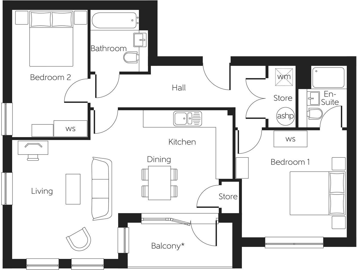 The Coniston is a 2-bedroom apartment, offering a substantial open-plan kitchen, dining and living area. Bi-folding doors from the kitchen open out to the inviting private balcony. Both bedrooms are double in size, and bedroom 1 boasts an en-suite shower room. The second bedroom is serve...