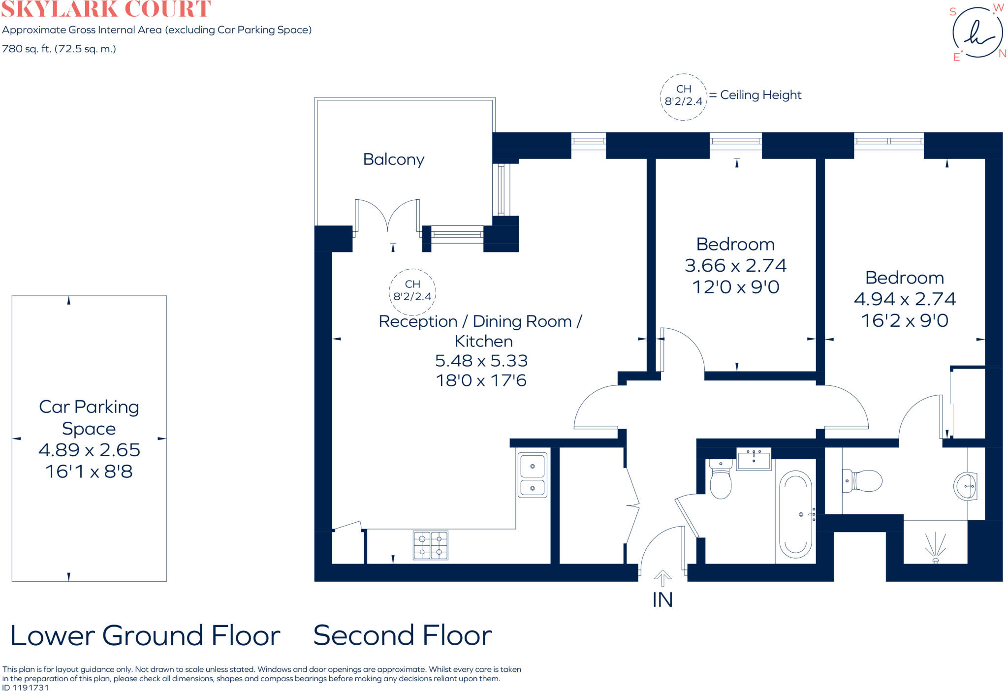A spacious second floor, two bedroom, two bathroom apartment, with private south west facing balcony and allocated parking space, positioned within a well maintained gated development.