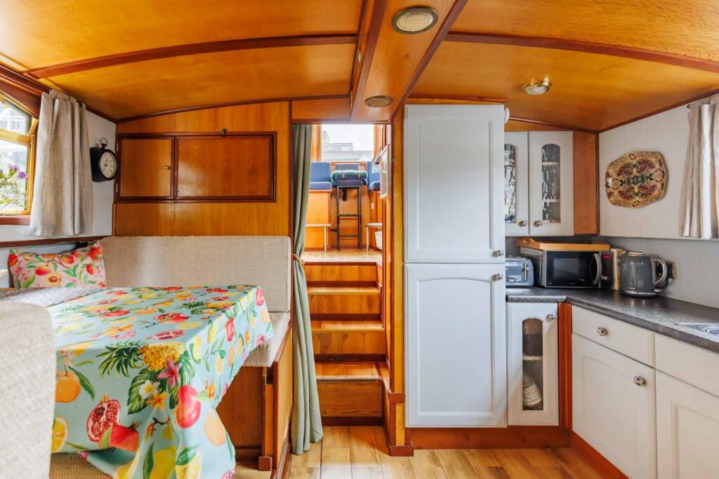 The property is a houseboat located in St Katharine’s & Wapping, a district of Tower Hamlets in London. The location benefits from being close to several transport links including Fenchurch Street, London Bridge, Liverpool Street and Shadwell stations, all within approximately 2km. Several primary schools with good Ofsted ratings are also within a 1km radius, making this an attractive location for families. The proximity to St Katharine Docks adds to the desirability, offering a picturesque setting and potential for leisure activities. Based on the images provided, the houseboat appears to be in good condition. The interior is well-maintained and presented, with a modern and stylish aesthetic. The wooden features are in excellent condition, and the fixtures and fittings seem to be of good quality. There is no visible evidence of significant wear and tear or the need for major repairs or renovations. While the property is a houseboat, and therefore doesn’t have a traditional garden, the mooring location within St Katharine Docks offers a waterside setting. This could be considered a desirable feature for some buyers, offering views and access to the marina. The list price of £240,000 for a 517 sq ft houseboat is significantly lower than the average house price in the area (£909,643). However, the average price per sq ft in the area is £942, while this property’s price per sq ft is considerably lower. The lower price point could be attributed to the property type (houseboat) which may appeal to a niche market. The nearby houseboat listings also support the comparatively lower price, though a direct sqft comparison is impossible due to missing data. Considering the location, condition and unique nature of the property, the list price may represent good value for money, particularly for buyers seeking a unique waterside living experience. However, further investigation into comparable houseboat sales in the area would be beneficial to confirm this.
