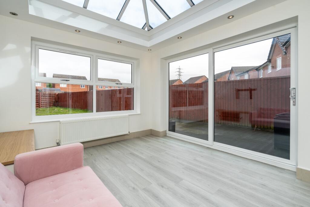 Stunning 4-bed detached house boasting a modern kitchen, conservatory, garage, and open-plan living in Cotton Meadows, Bolton.