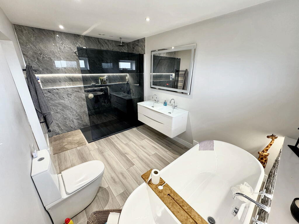 This nicely presented and spacious detached bungalow is one of two built by the current owner and offers great family accommodation of 4 bedrooms (all with en-suite facilities), superb kitchen/diner/family room, large living room, Utility, WC, large rear garden, double garage and garden room a...