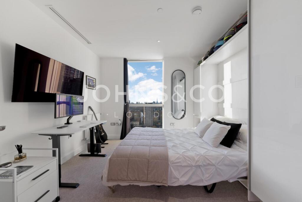 Experience luxury living in the heart of Canary Wharf with this stunning two-bedroom apartment on the 19th floor of Salvor Tower.