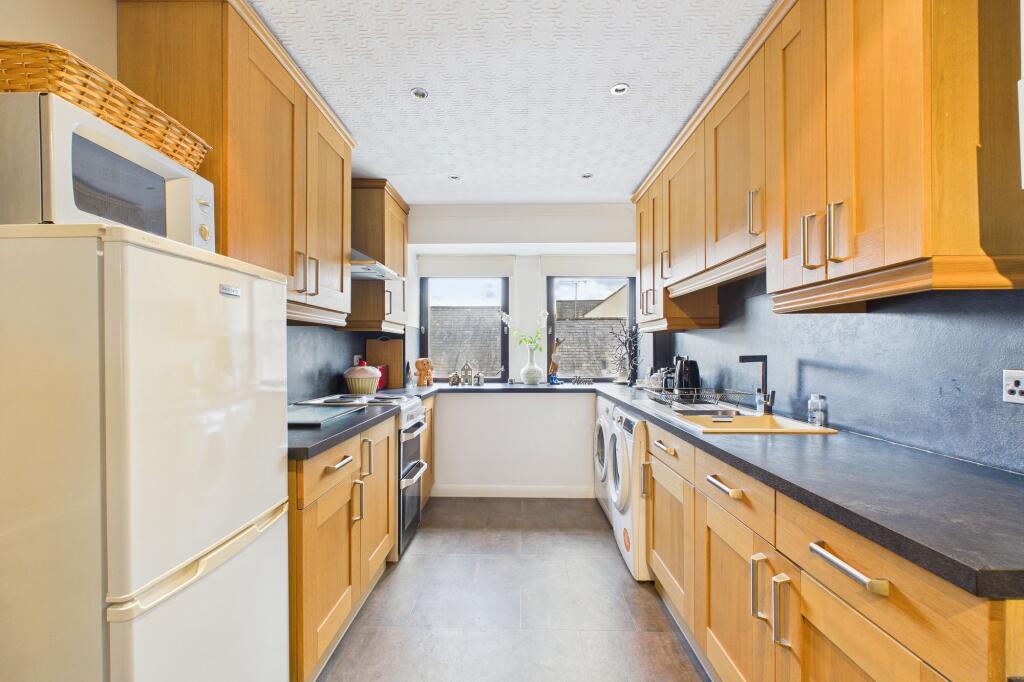 This is a two-bedroom flat located on Waterloo Street, Cockermouth. The property appears to be in good condition, with a modern kitchen and bathroom. It benefits from its location in Cockermouth, with proximity to local schools and amenities. However, as a flat, it lacks private outdoor space. The asking price of £129,950 seems reasonable when compared to the average price per square foot in the area and nearby listings.