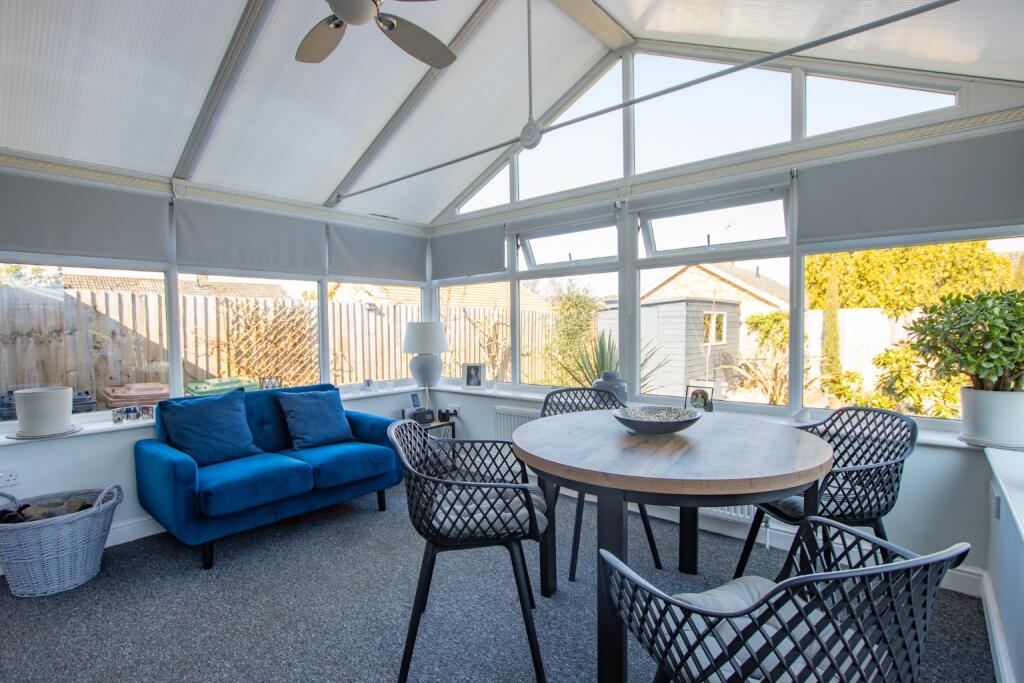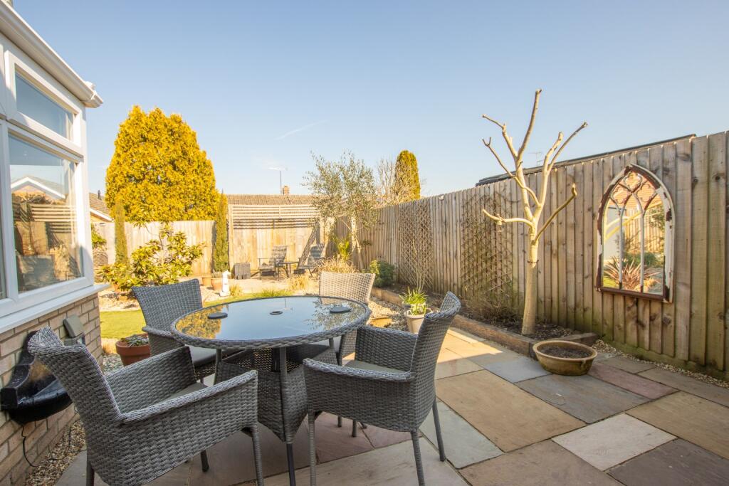 A well-presented bungalow on quiet cul-de-sac, within a short walk of the village centre. Spacious sitting room, conservatory & 2 double bedrooms. Beautifully landscaped garden, garage & driveway.