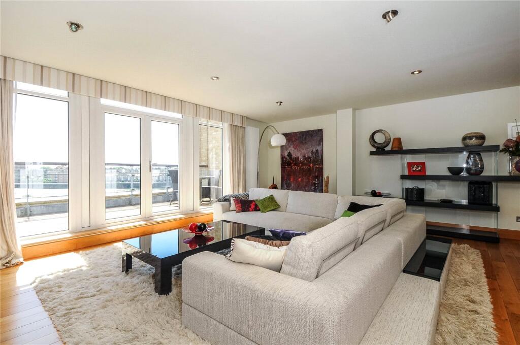 A bright riverside three double bedroom apartment situated on the 4th floor of this popular development located on Narrow Street. The property benefits from three private balconies/terraces, wood flooring, a spacious living room with open plan kitchen and upstairs are 3 bedrooms and tw...
