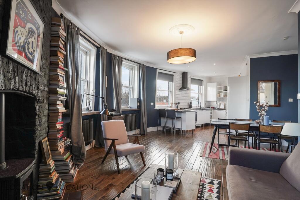This property is located in Stoke Newington, Hackney, a popular area of London known for its vibrant atmosphere, independent shops, and good transport links. The property itself is a 2-bedroom, 1-bathroom flat with a sizable floor area of 1002 sqft. Based on the images provided, the property appears to be in excellent condition, with a modern, well-maintained interior. The kitchen and bathroom look recently updated. There is no garden. While the list price of £700,000 is above the average for nearby properties, the size and apparent condition of this property, coupled with its location in a desirable area of London, could justify this price point. More information on the average price per sqft in the immediate vicinity would be helpful to solidify this analysis.