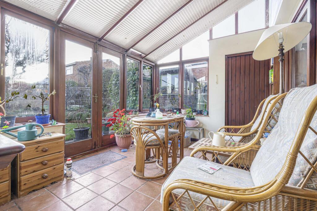 An extended four-bedroom family home with a south-facing rear garden and large attached garage, offered for sale with no onward chain
