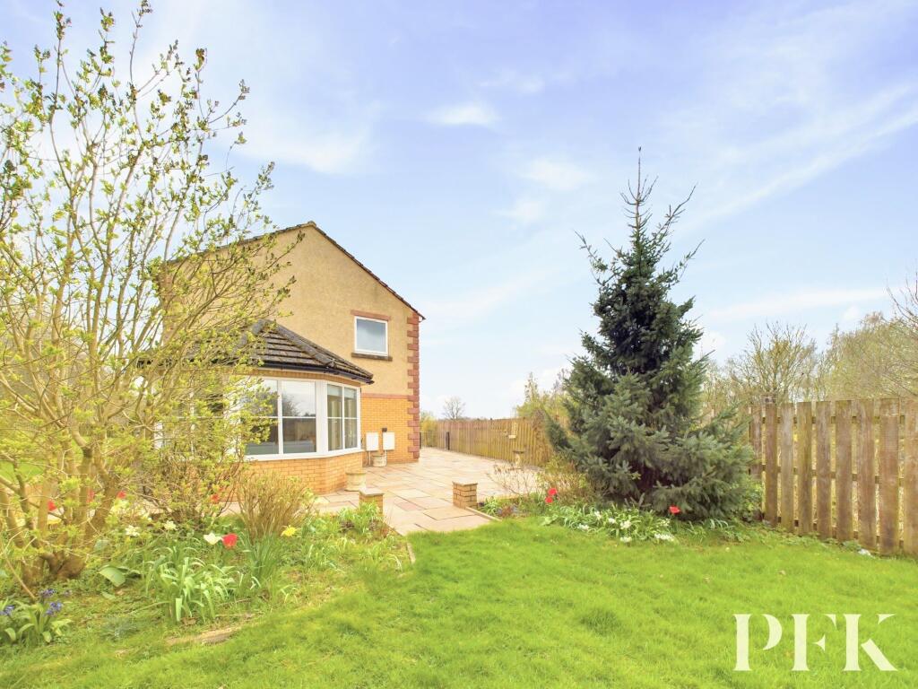 Spacious detached family home in peaceful setting. Thoughtfully designed for modern living. Large living room, open-plan kitchen, three double bedrooms, single bedroom, ample parking, detached garage, and lovely patio area for outdoor entertaining.