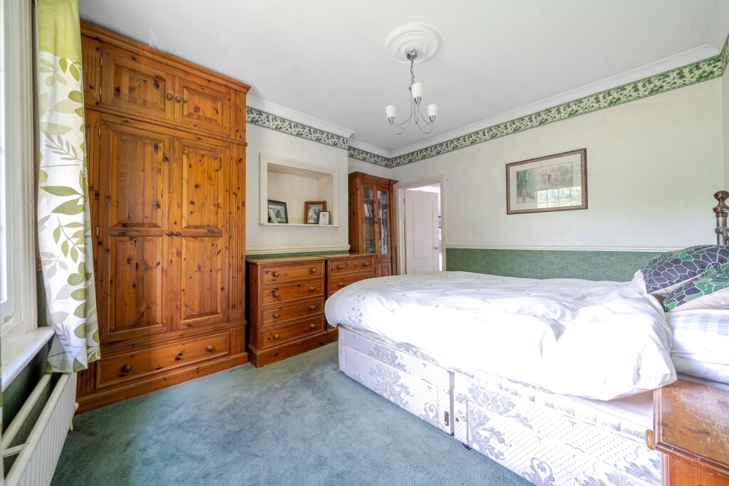 Nestled in a prime position overlooking the village green, this distinguished double-fronted red brick detached home dates back to the 1890s and is set back from the road, offering both privacy and timeless period charm. Situated within convenient walking distance of Hoe Valley School, Woking Lei...