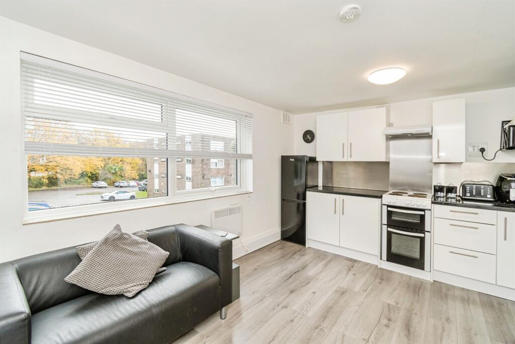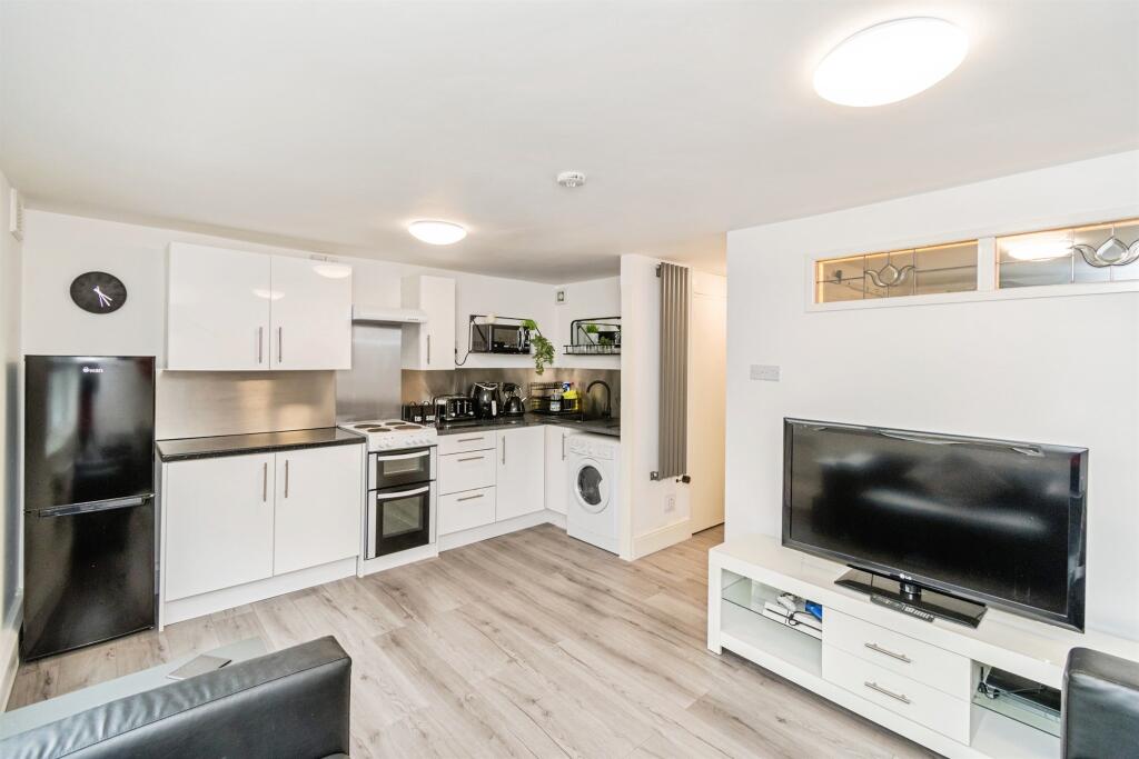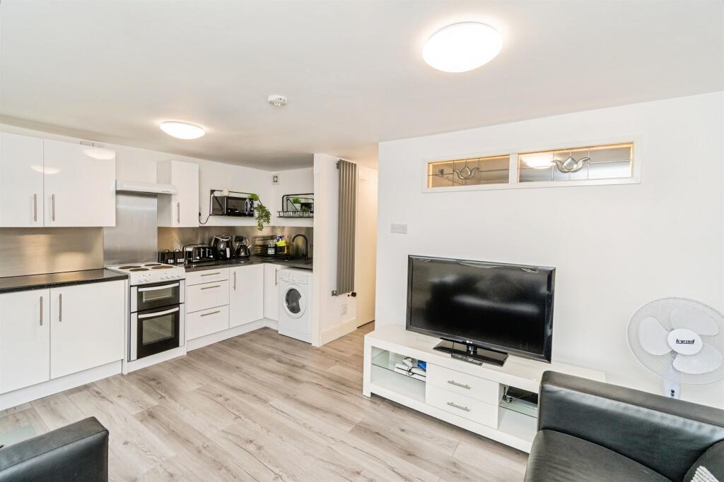 A modern first-floor one-bedroom flat featuring a bright open-plan lounge and kitchen, a spacious double bedroom, and a stylish contemporary bathroom. Perfect for easy, comfortable living in a sleek, well-presented home.