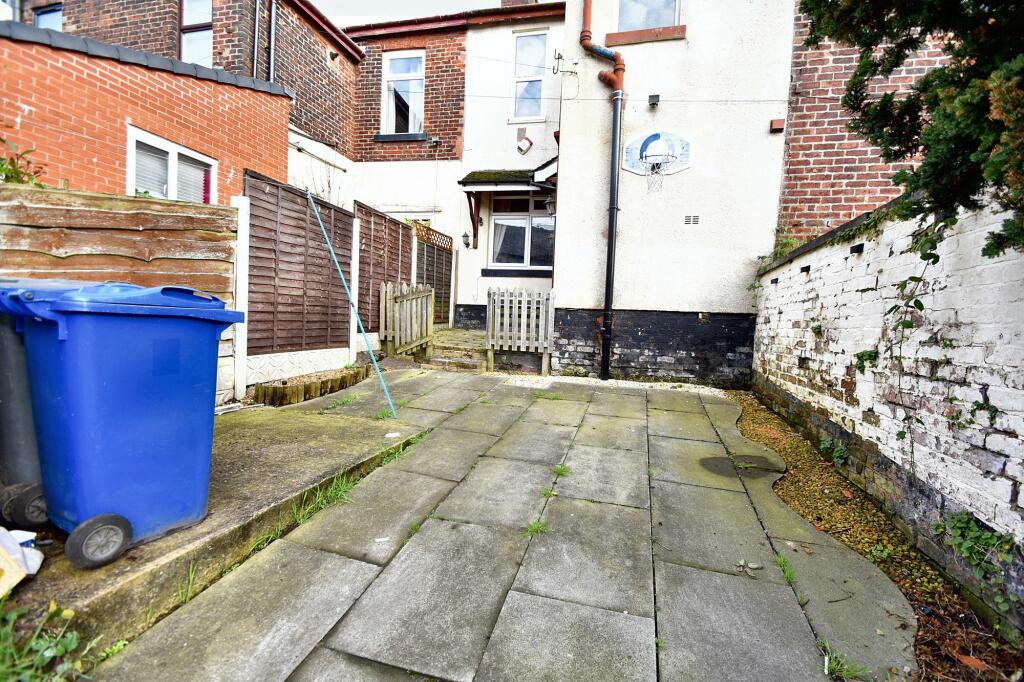 This three-bedroom terraced house located on Ainsworth Road in Radcliffe, Bury, is presented for sale at £185,000. The property offers a relatively straightforward layout with three bedrooms, one bathroom, and what appears to be a small yard/garden.