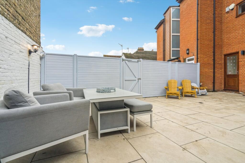 This is a terraced property located on Tilehouse Street in Hitchin. It features 5 bedrooms and 3 bathrooms. The property is in good condition, with a modern kitchen and stylish interior design. It also benefits from a rear garden with a small outbuilding and a roof terrace. The location is desirable, with nearby schools, transportation options, and amenities. The list price of £925,000 appears reasonable given the property’s features and the prices of nearby listings.