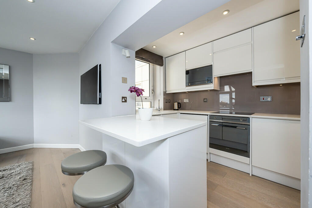 A bright well-proportioned sixth floor flat (525sqft) with stunning South West far reaching views in a modern, purpose build block, with lift and porter. This recently refurbished property has been cleverly designed to maximise storage throughout and consists of a large reception room with semi-...