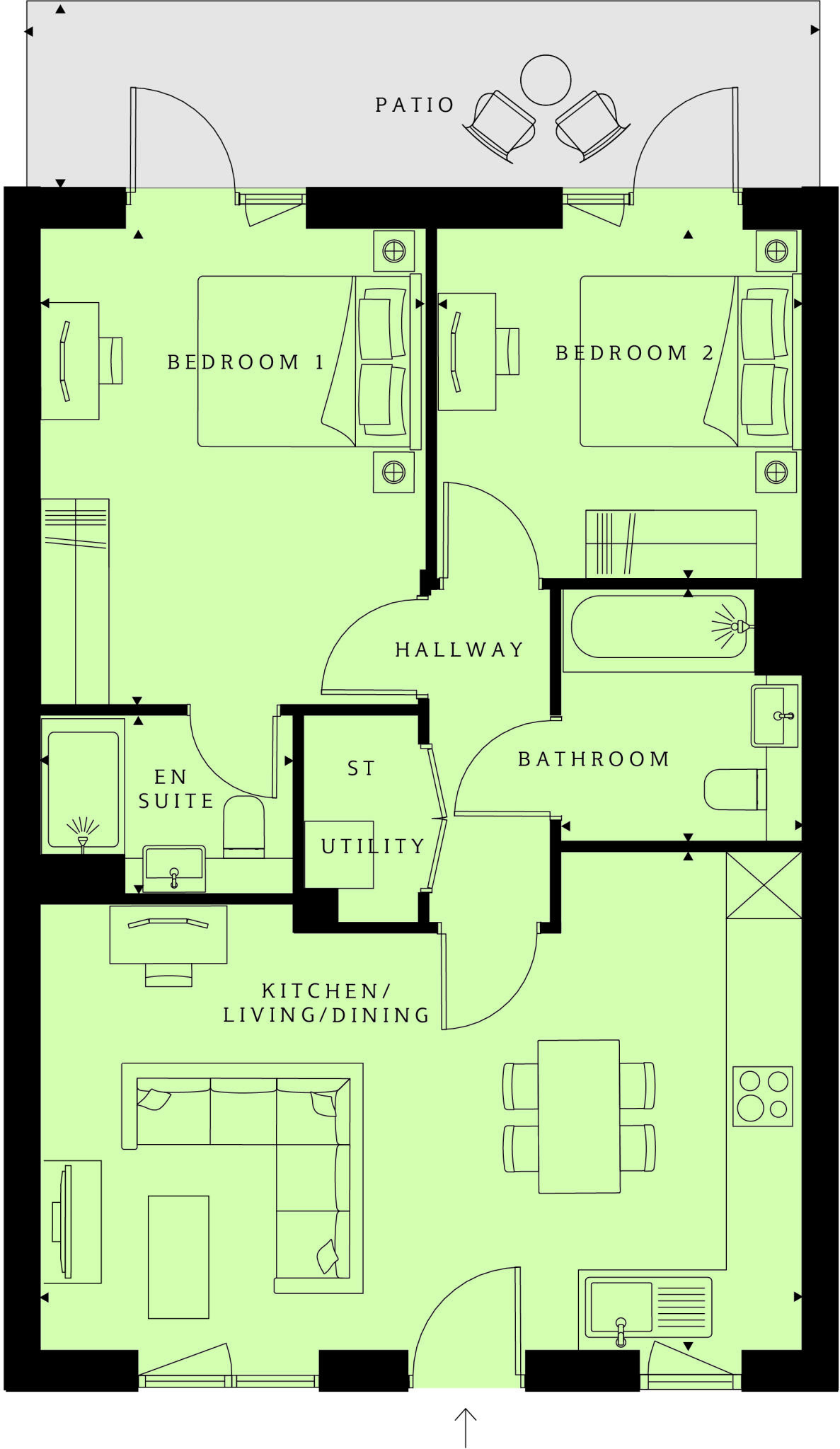 This two-bedroom ground floor home is part of our TERRACE APARTMENTS COLLECTION. Step inside your private front door into to an open-plan living/dining area that seamlessly blends with an your fully-fitted kitchen. A large patio can be accessed from both spacious double bedrooms. The apartment o...