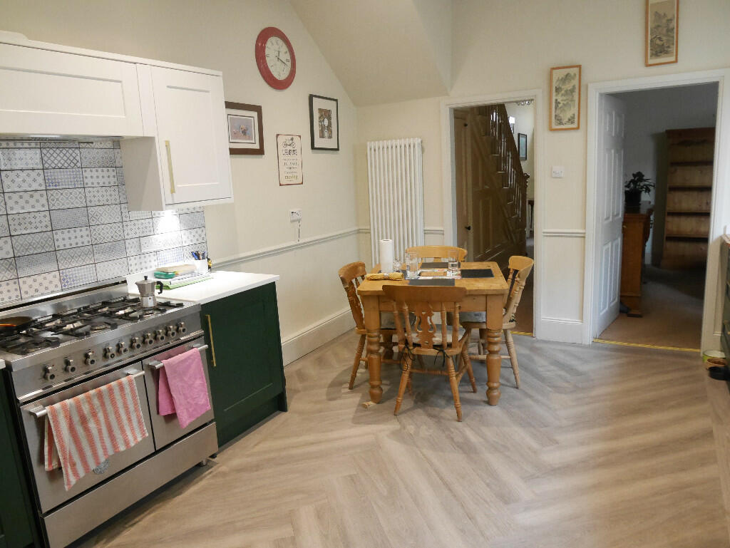 Spacious four-bedroom terraced property. In brief the accommodation comprises; entrance hall, living room, second reception room, dining kitchen, shower room and rear lobby/cloakroom area. There is also a useful cellar with good head height. To the first floor there are ...............
