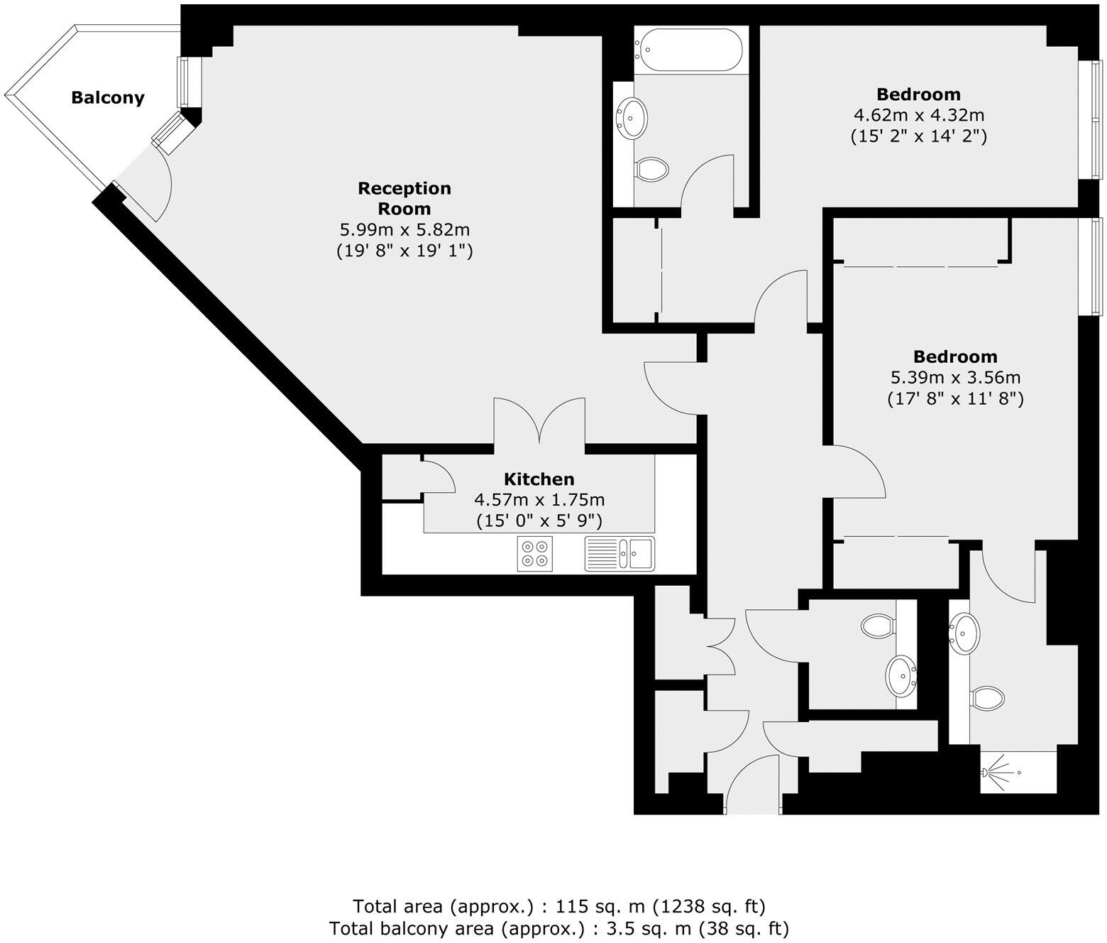 Two Bedrooms | Three Bathrooms | 3rd Floor | Balcony | 24-hour Concierge | 0.1 mile to Vauxhall Station | 1238 sq.ft A generously sized apartment located in Flagstaff House on the popular St George Wharf. This property offers views of River Thames and consists of a large living room a...