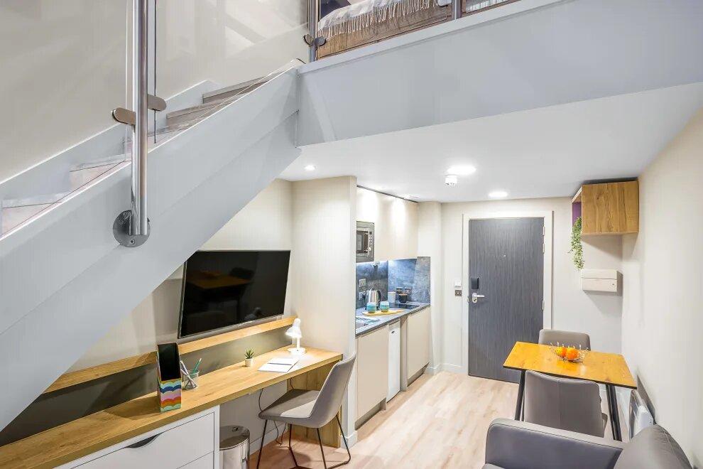 Your all-inclusive Elegance Duplex apartment at Gravity in Lincoln offers complete open plan living over two floors including:* Two floors separating your living, cooking and sleeping zones* Large flat-screen TV* En-suite bathroom with rainfall shower