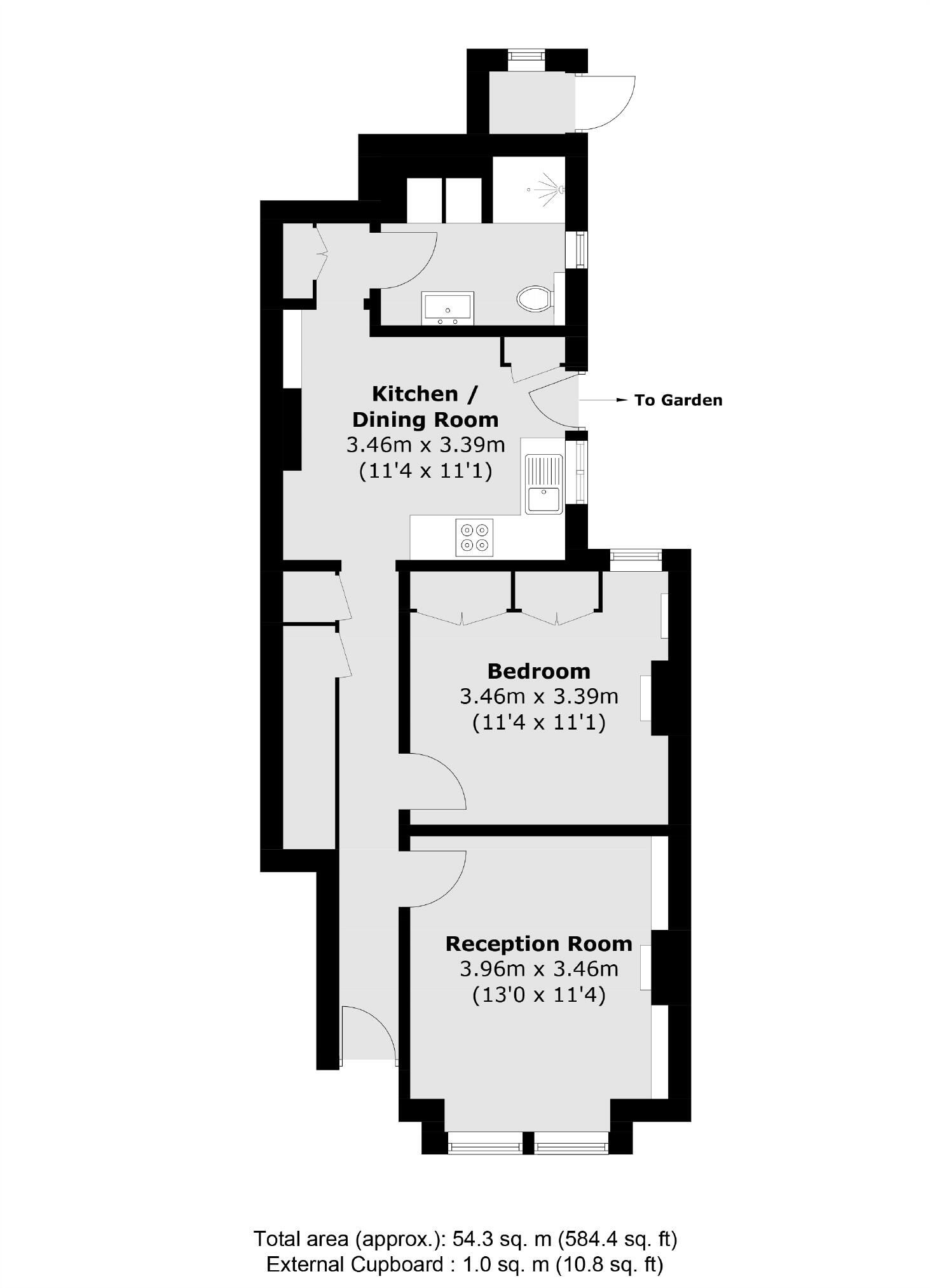 A one double bedroom ground floor maisonette with a spacious front reception and a large eat-in kitchen with a stylish bathroom located at the rear, leading on to a private garden.