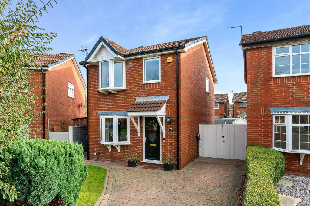 This three-bedroom detached property in Oban Grove, Fearnhead, Warrington presents itself as a well-maintained and attractively presented home. The property boasts a modern kitchen and what appears to be recently updated interior finishes, with a contemporary and stylish design throughout. The images highlight a comfortable and light-filled living space, with well-proportioned rooms. The property benefits from a good-sized rear garden, complete with paved patio area and lawn, ideal for outdoor living.