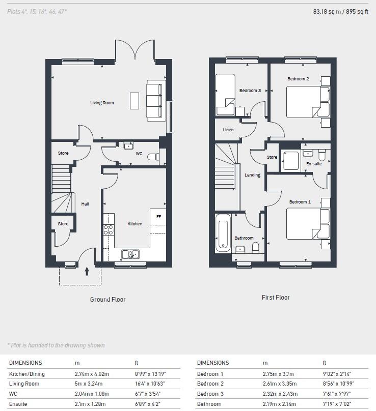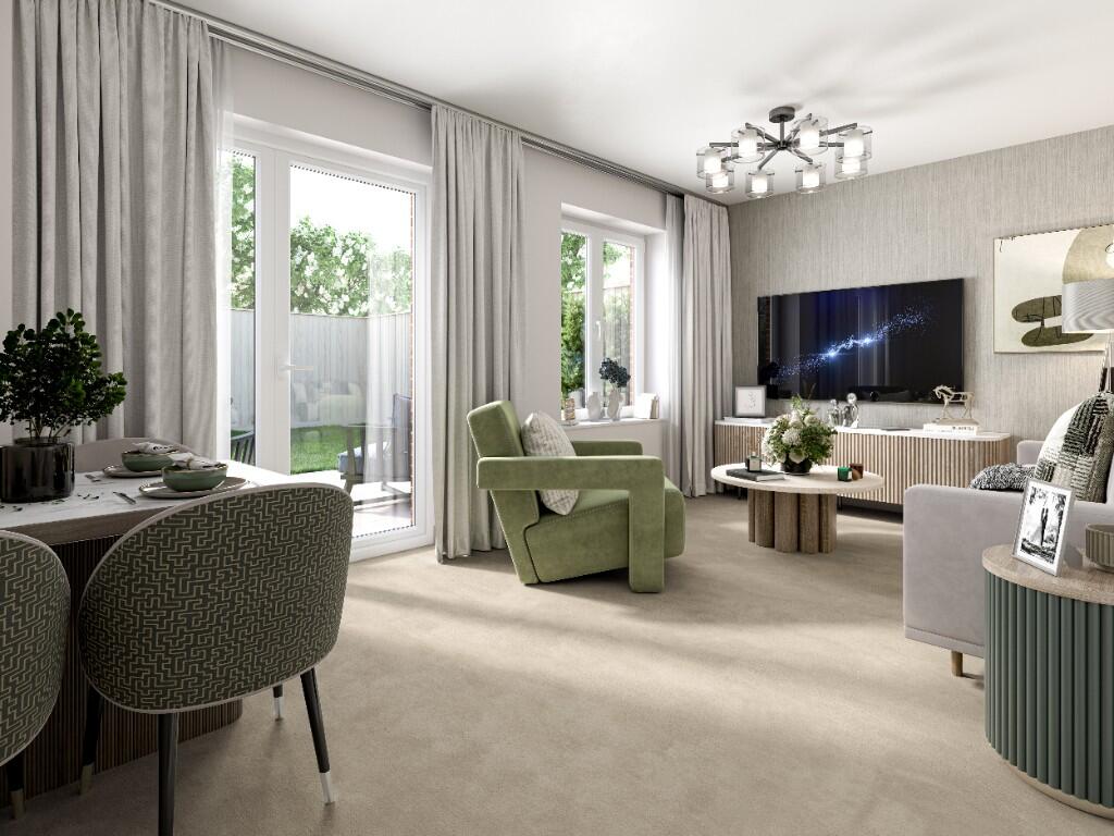 The Ellingham at Hartsdown Gardens is a stylish 3-bedroom home offering 895 sq. ft. of space. Features include a kitchen/diner, spacious living room with patio doors, en-suite to main bedroom, family bathroom, and four storage cupboards throughout.