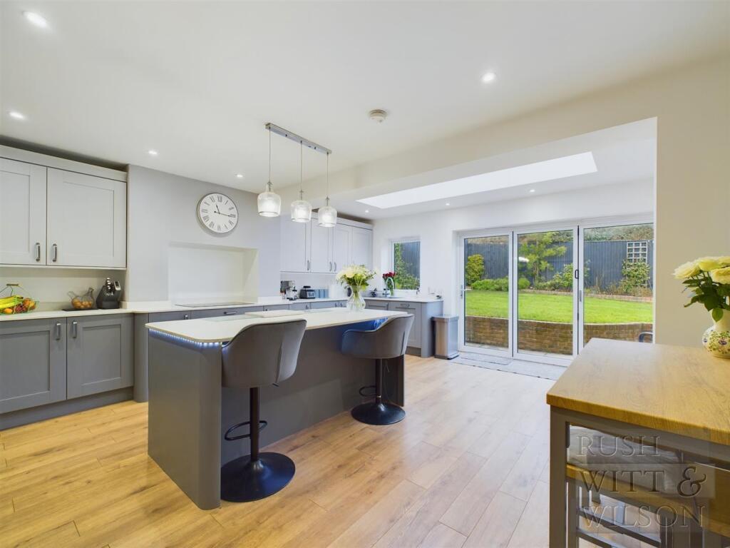 This four-bedroom, two-bathroom house located on Oakwood Close in St Helens, Hastings, East Sussex, presents as a well-maintained family home. The property boasts a recently updated kitchen and bathrooms, evident in the high-quality photographs provided. The kitchen extension is a significant enhancement, adding considerable living space and creating a bright and modern feel. The garden, though not extensively detailed, provides outdoor space. The proximity to several primary schools, including two rated ‘Outstanding’ by Ofsted and one ‘Good’, is a considerable advantage. Public transportation is available, though a short commute to various train stations is required. The lack of comparative local property pricing data makes a complete market valuation assessment challenging. However, the home’s apparent quality and family-friendly location suggest a potentially strong value proposition, depending on the actual market price per square foot in this specific area. More information regarding the plot size and comparables would refine the analysis.