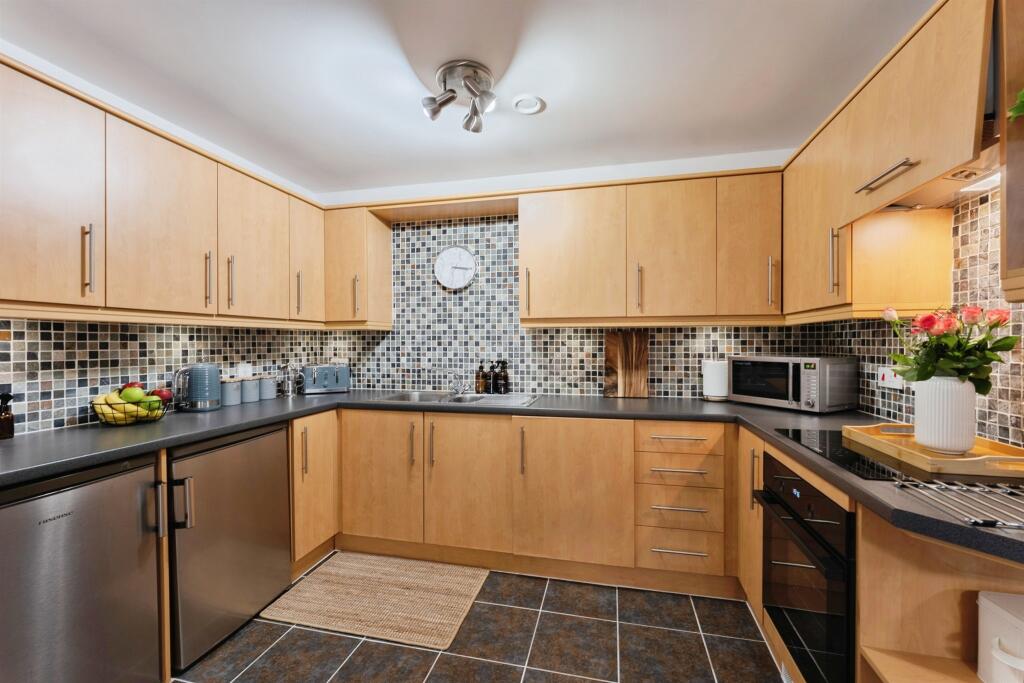 This is a two-bedroom apartment located in Eastham, Wirral. The property appears to be in good condition, with modern interiors. It benefits from proximity to local schools and transportation links, including Eastham Rake train station. The apartment is reasonably priced compared to the average price per square foot in the area. While it lacks a private garden, there is a communal green space nearby. The property is listed with Jones & Chapman.