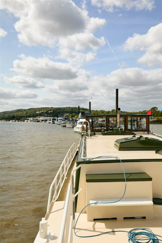 This property is a unique offering – a converted Dutch barge situated in Port Medway Marina, Rochester. The houseboat has been renovated and presents a well-maintained interior, featuring a light and airy living space, two bedrooms, and two bathrooms. The interior design utilizes a considerable amount of wood which provides a warm and nautical feel, complemented by modern fixtures and fittings. The location offers the appeal of riverside living, within reasonable proximity to the amenities of Cuxton, including good primary schools (Cuxton Community Infant School and Cuxton Community Junior School both rated ‘Good’ by Ofsted) and the Cuxton train station which provides convenient access to Southeastern rail services. This offers easy access to major towns and cities.