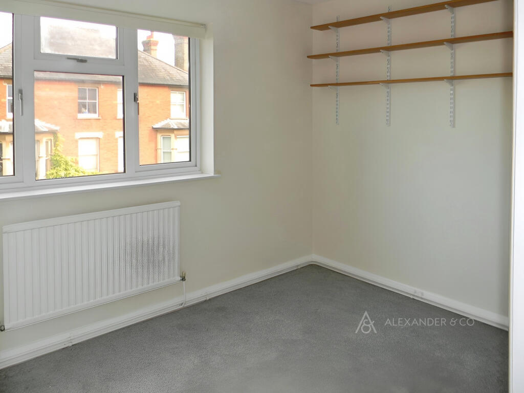 A spacious two bedroom first floor flat, ideally located on a residential street a short walking distance from the town centre and train station. This property benefits from 2 double bedrooms, living area, kitchen and a garage